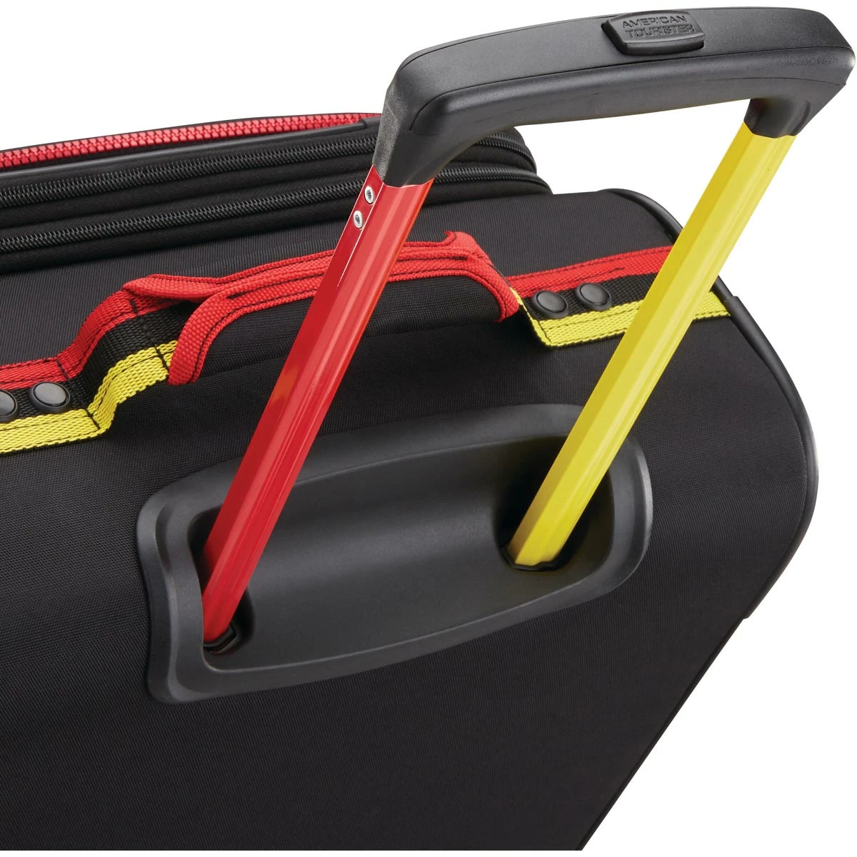 - Telescopic multi colored tube trolley handle adjusts to the user’s height