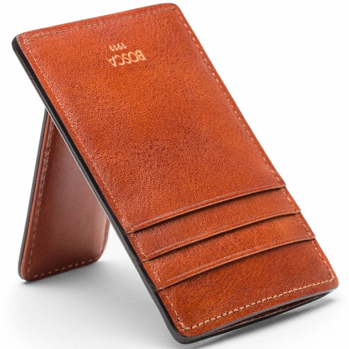 Designed to be carried in your front pocket, this wallet gives your back pockets a much-needed break. It has a money clip with two rare earth magnets, ensuring your cash stays in place. The deep center well can house both cash and cards. On the exterior, there are three additional card slots for credit cards, IDs, and loyalty cards.