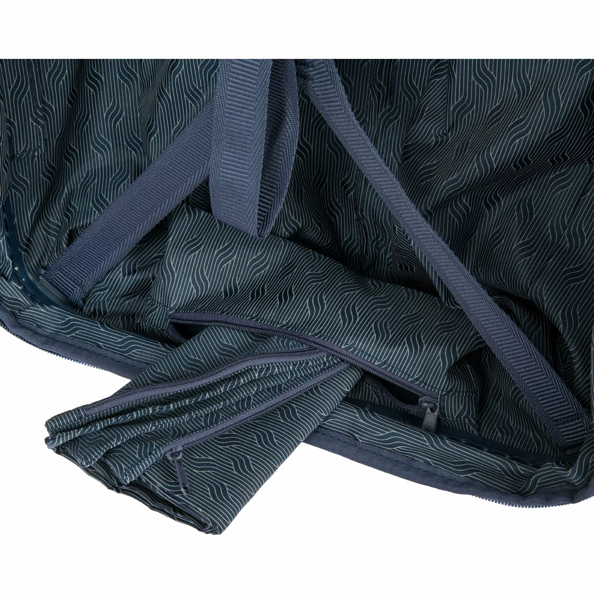 - INTERIOR: a two compartment interior is fully lined with a printed lining. One side with a full zipper section and mesh pocket, the other with a stretchable strap to hold all your belongings in place, a smaller pocket for smaller accessories and a shoe/laundry bag.