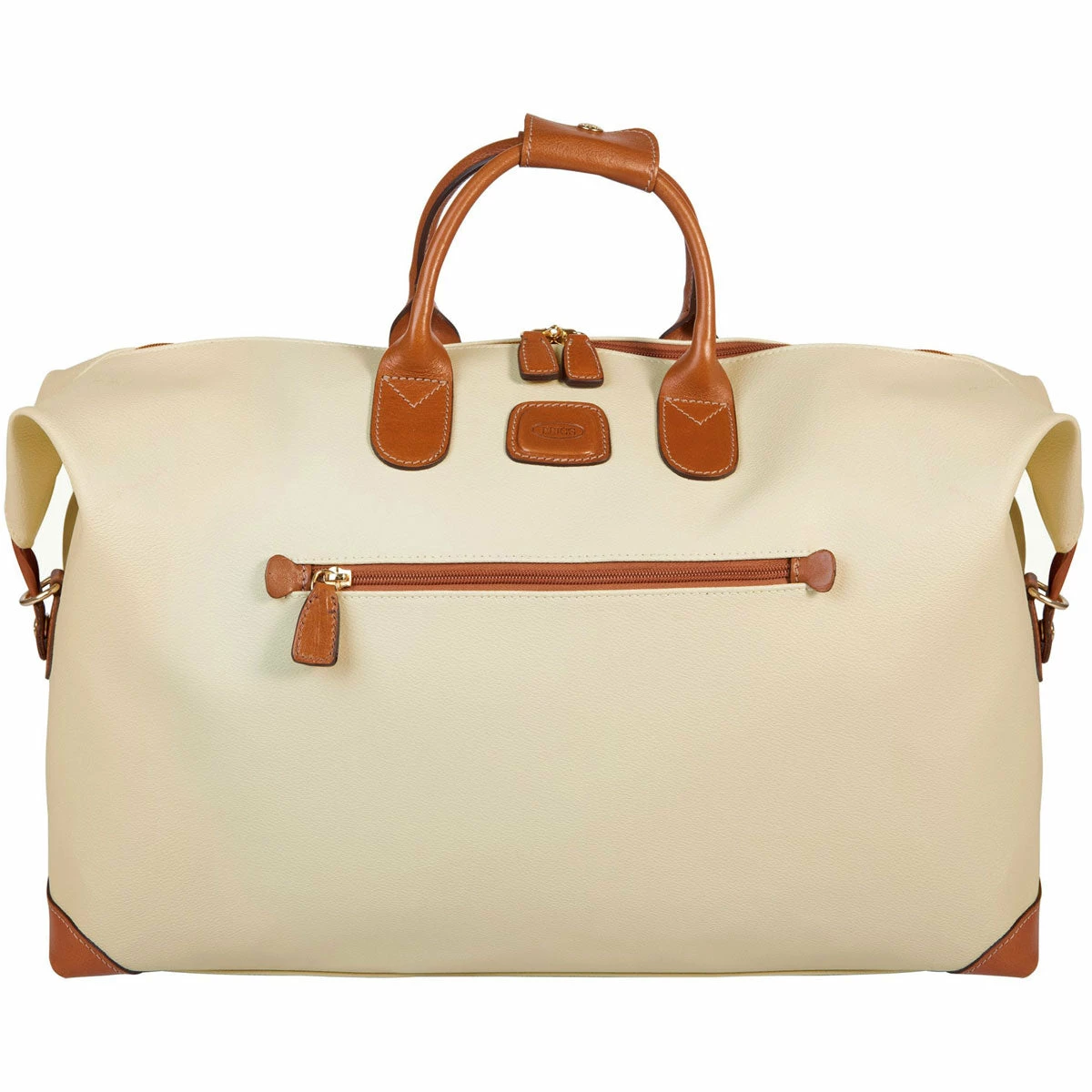 The Firenze 22″ Cargo Duffle is handcrafted using durable, easy to clean, embossed leather-like PVC with vegetable tanned leather trimmings. This classic holdall is offered in a signature Cream color way. BRIC’S Firenze offers an assortment of travel items that look good and travel even better. The interior lining features a BRIC’S logo jacquard print that is also water-proof. Toss our trusty duffle bag into the backseat, and head out on the open road. This is the must-have road trip travel bag.