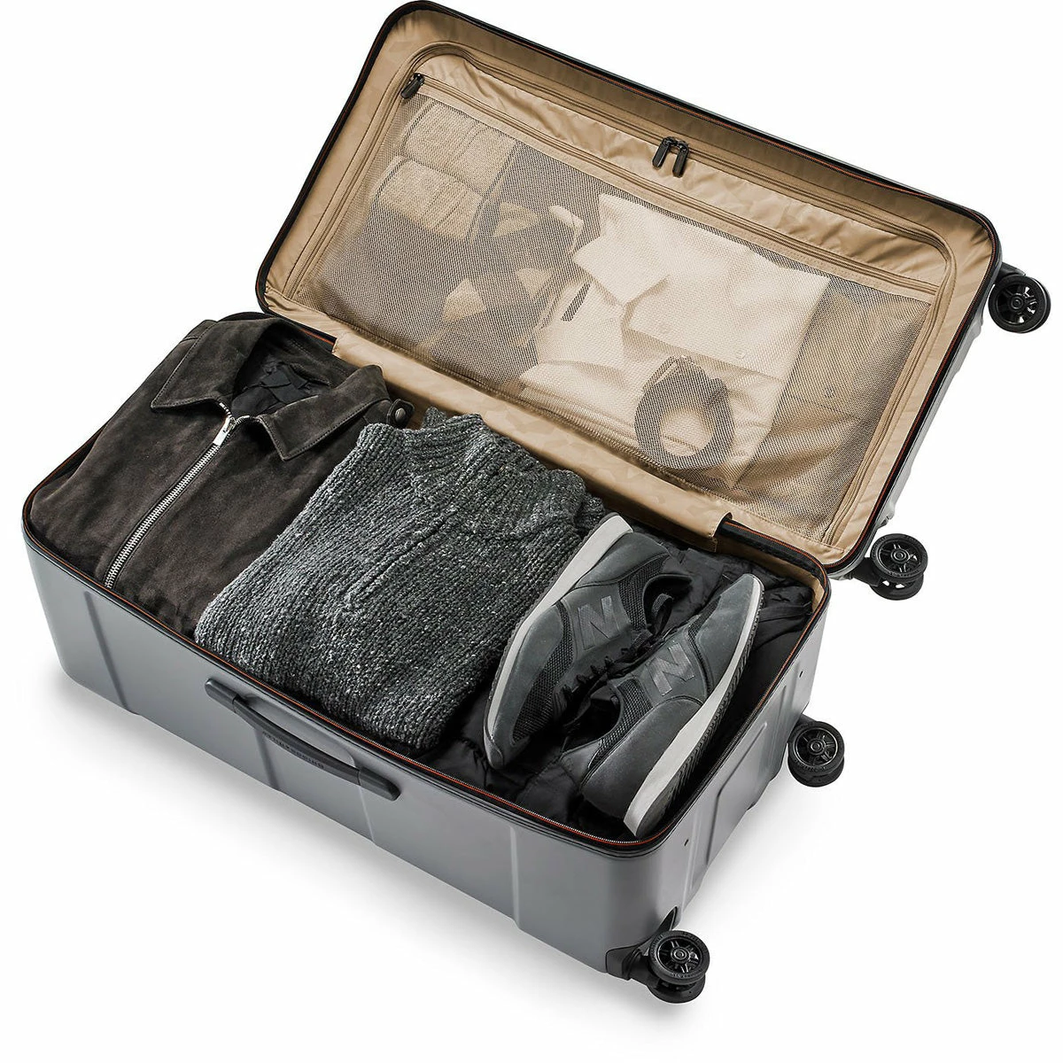 - Outsider® handle provides greater interior capacity and a smooth surface for packing so clothes arrive wrinkle-free.