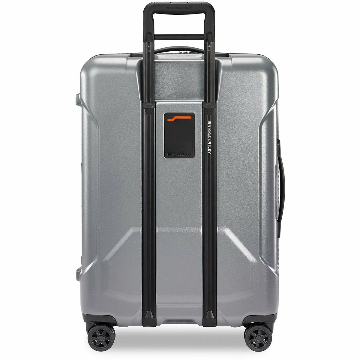 - Integrated ID tag sleeve in between handle bars with orange accent for a sleek way to conceal personal information.