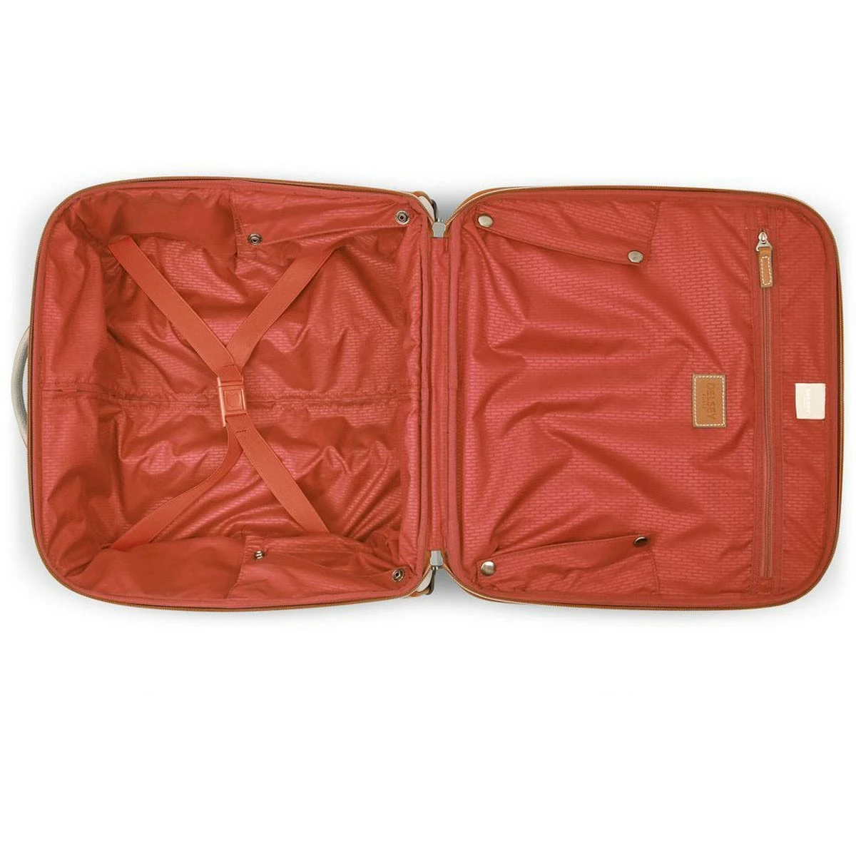 The Delsey Chatelet Air 2.0 2 Wheel Under-Seater is perfectly sized to fit under the seat in front of you. The expansive opening interior features two elastic side pockets for you to store any cords or smaller items, a zippered pocket to store accessories, and elastic bands that ensure everything stays where you need it.Â