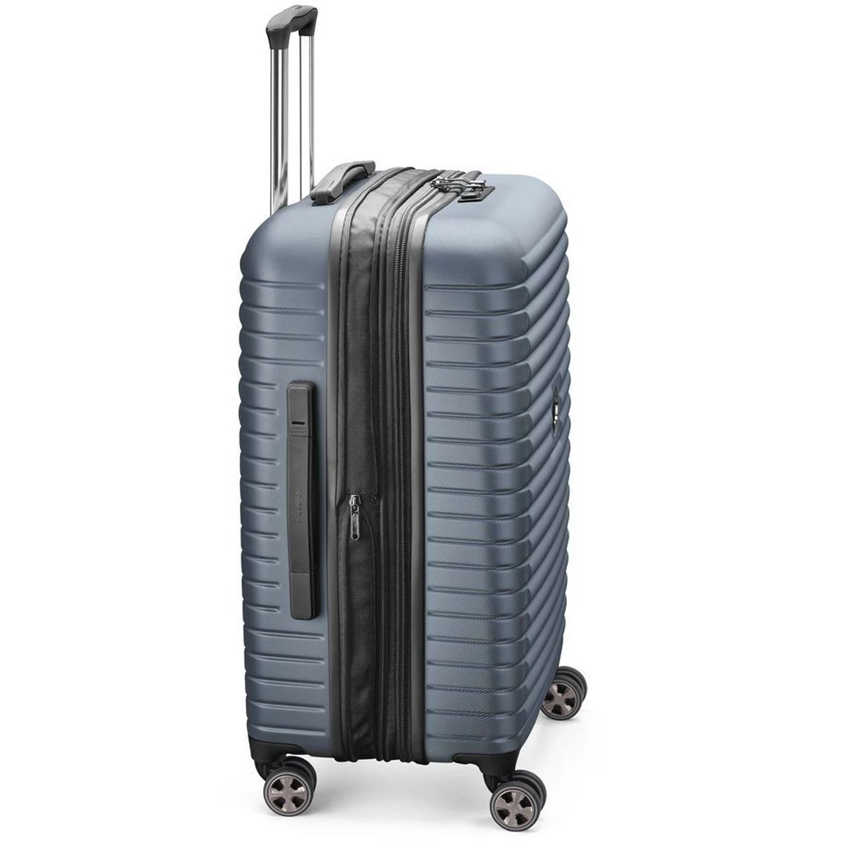 - A smart bag inside and out! This medium check-in bag is equipped with DELSEY’s patented overweight indicator: built into the side carry handle, it lets you know if your luggage weighs more than 48.5 lbs to avoid overweight charges at the check-in counter. Plus, no battery is required. This bag also features dual-density spinner wheels for superior mobility, and three carry handles – on the top, side and at the bottom – providing maximum convenience when lifting a fully packed case.
