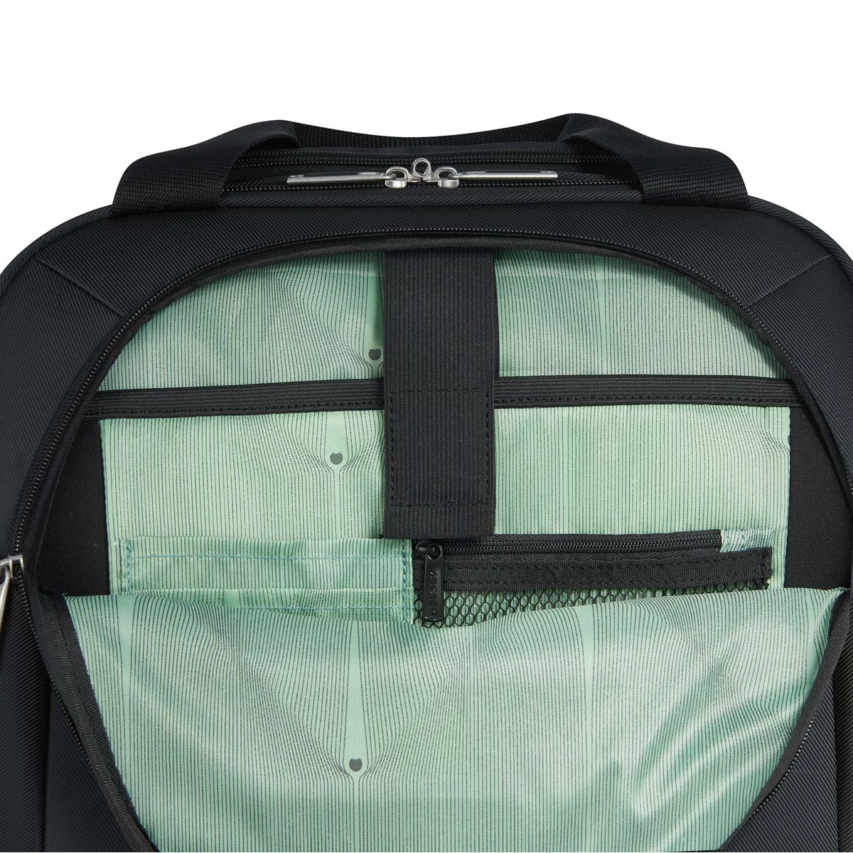 - Interior includes protection for a laptop, as well as a lined divider and 3 pockets to keep clothing and accessories organized