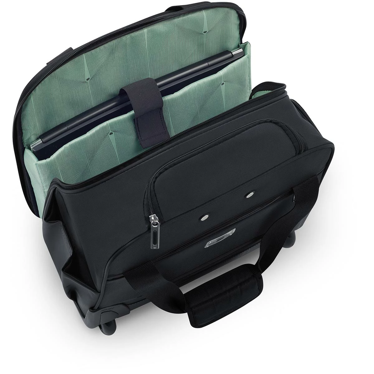 - Choose to carry by hand by using the dual-wrapping carry handles, or roll using the telecoping handle