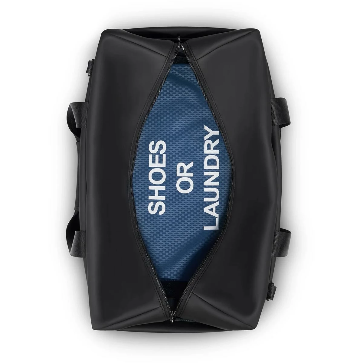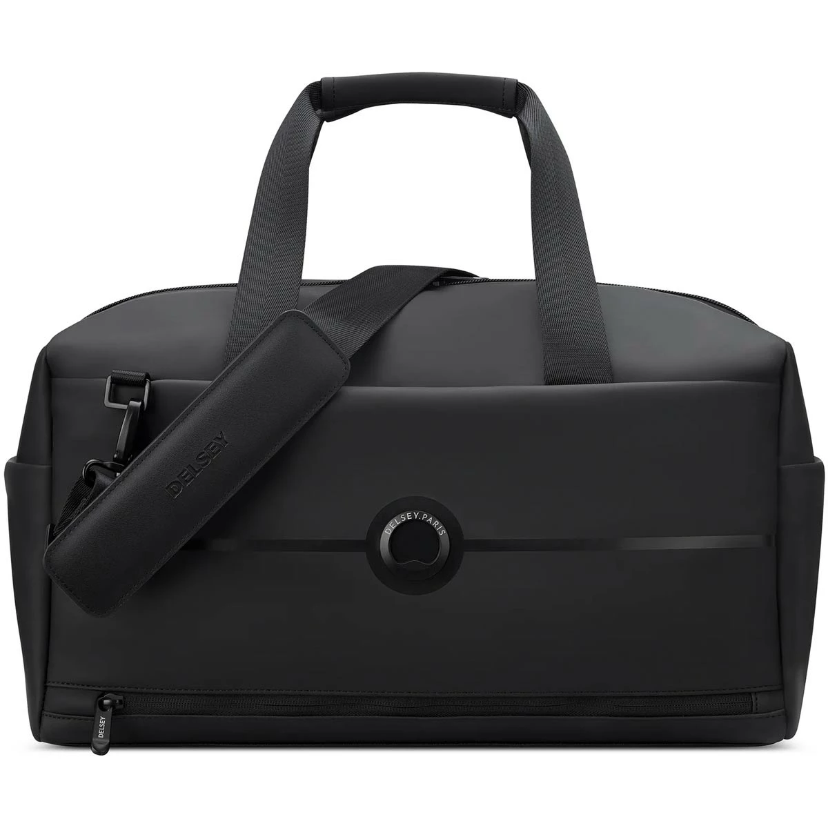 This Delsey Turenne Duffel Bag is made from recycled plastic bottles making it eco-friendly, lightweight, durable and water resistant. Featuring two loop carry handles and an adjustable/removable shoulder strap. Inside, pack neatly with the included shoe/laundry bag. When traveling, easily carry this bag hands free by sliding over the upright handle of your carry on with the rear sleeve pocket.