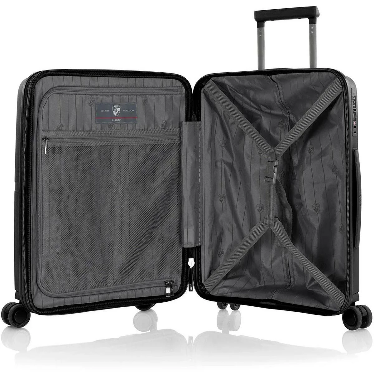 The Heys AirLite 21″ Expandable Spinner is lightweight and impact resistant able to withstand a 750lb impact without breaking. It is available in six subtle shades with a matte sheen and stylish colour-matching wheels, handles, lock, zippers and trim. It features a fully-lined interior with zippered divider, buckled compression straps and zippered pockets as well as an expansion system that allows for an extra 20% in packing capacity. The 360° spinner wheels allow for effortless motion in different terrain and the flush mounted built-in color matched TSA approved combination lock help keep your valuables safe.