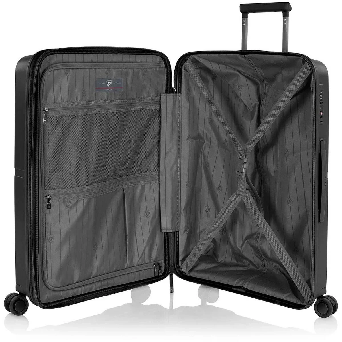 The Heys AirLite 26″ Expandable Spinner is lightweight and impact resistant able to withstand a 750lb impact without breaking. It is available in six subtle shades with a matte sheen and stylish colour-matching wheels, handles, lock, zippers and trim. It features a fully-lined interior with zippered divider, buckled compression straps and zippered pockets as well as an expansion system that allows for an extra 20% in packing capacity. The 360° spinner wheels allow for effortless motion in different terrain and the flush mounted built-in color matched TSA approved combination lock help keep your valuables safe.