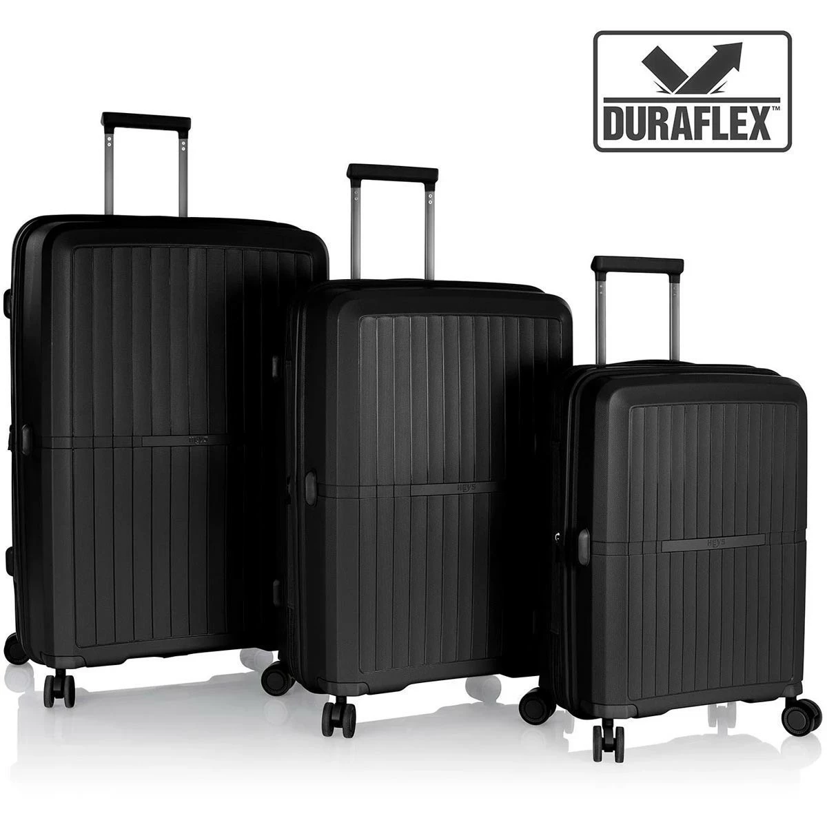 The Heys AirLite 3 Piece Expandable Spinner Set is lightweight and impact resistant able to withstand a 750lb impact without breaking. It is available in six subtle shades with a matte sheen and stylish colour-matching wheels, handles, lock, zippers and trim. It features a fully-lined interior with zippered divider, buckled compression straps and zippered pockets as well as an expansion system that allows for an extra 20% in packing capacity. The 360° spinner wheels allow for effortless motion in different terrain and the flush mounted built-in color matched TSA approved combination lock help keep your valuables safe.