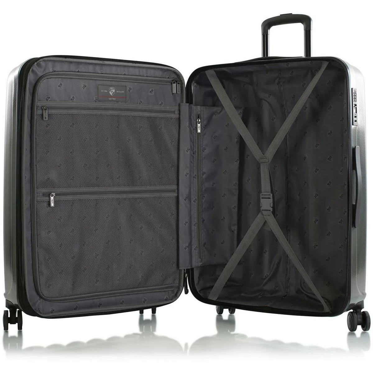 - Elegant colour-matched handles, trolley, trim, lock, zippers, wheels.