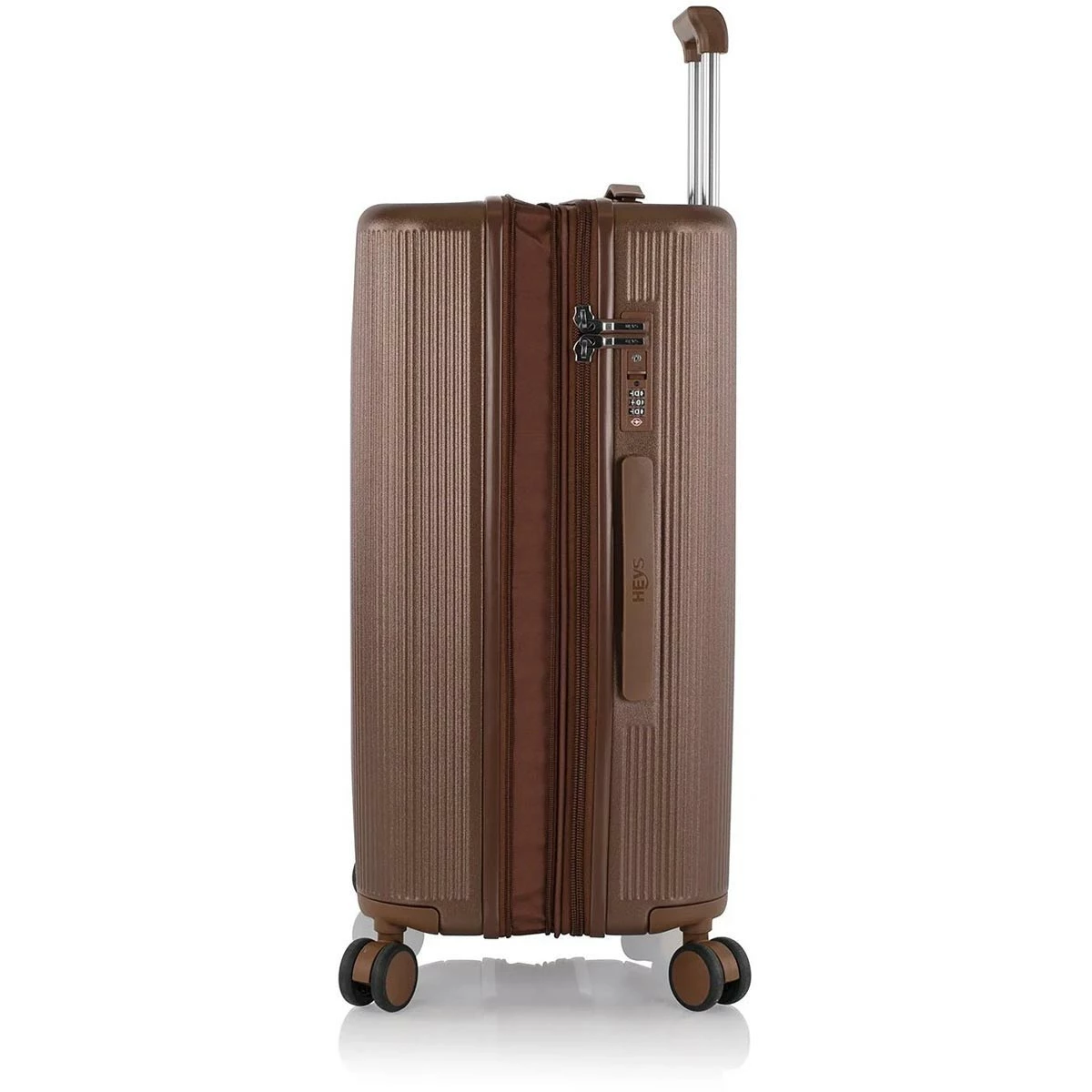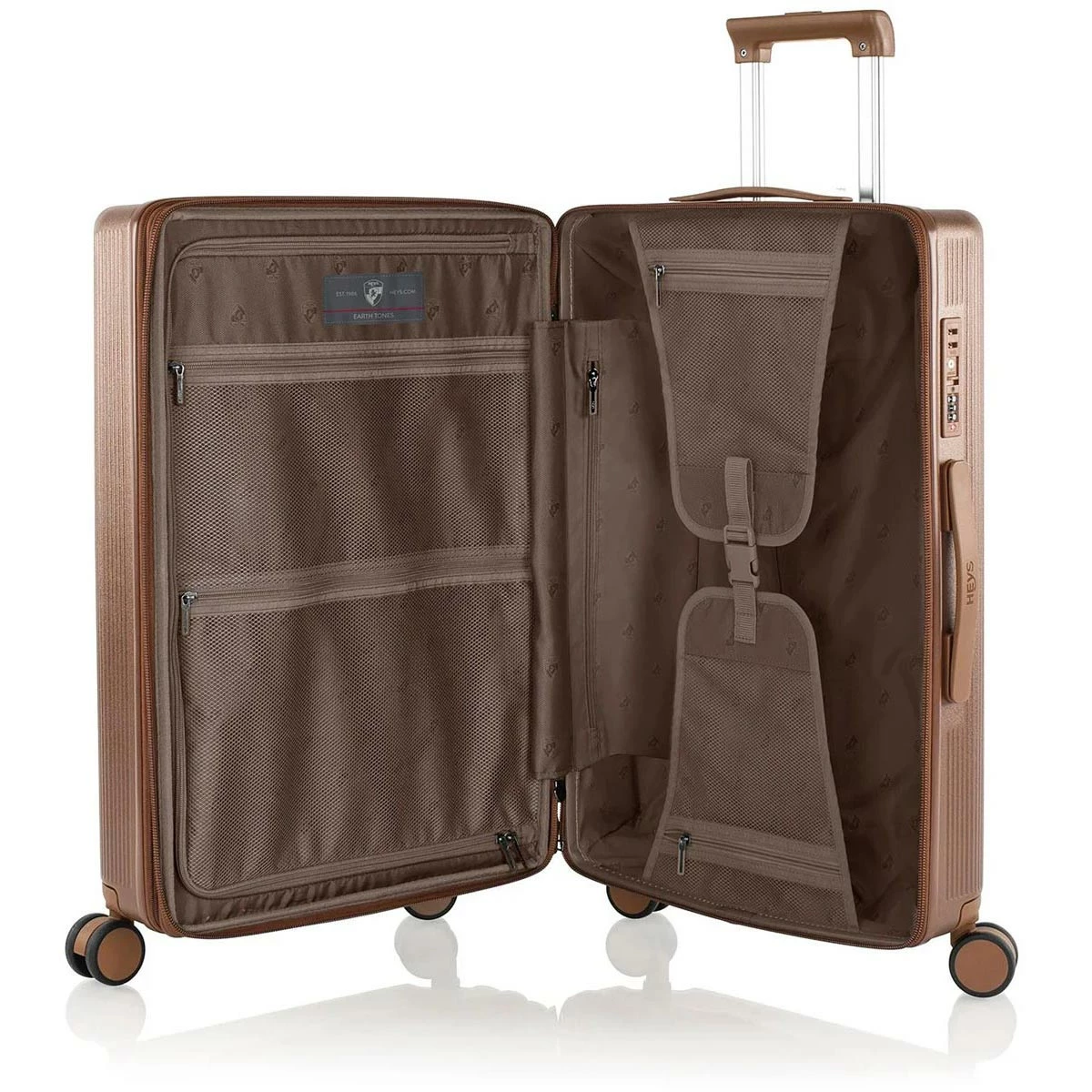 The Heys Earth Tones 26″ Expandable Spinner is made of 100% pure Polycarbonate. It’s available in warm earth tone colors and features a fully-lined color matching interior with zippered divider, buckled compression straps and large zippered pockets as well as an expansion system that allows for an extra 20% in packing capacity. The 360° dual spinner wheels allow for effortless motion in different terrains and the flush mounted built-in TSA approved combination lock will keep your valuables safe.