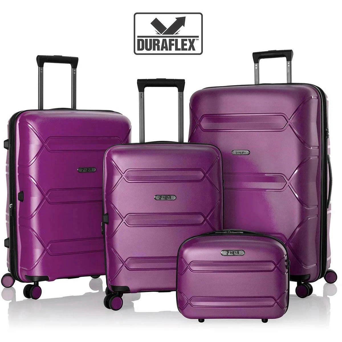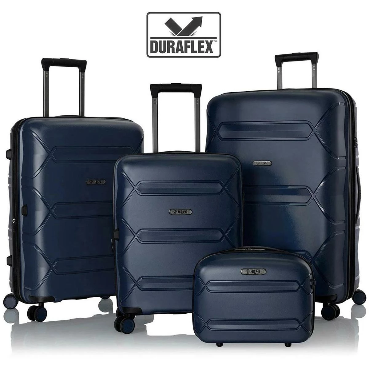 The Heys Milos 4 Piece Expandable Spinner Set is lightweight and impact resistant able to withstand a 750lb impact without breaking. Available in five stylish metallic colors with a subtle dual textured shell for a striking appearance. It features a fully-lined interior with zippered divider, buckled compression straps and zippered pockets as well as an expansion system that allows for an extra 20% in packing capacity. The 360° spinner wheels allow for effortless motion in different terrain and the flush mounted built-in color matched TSA approved combination lock help keep your valuables safe.