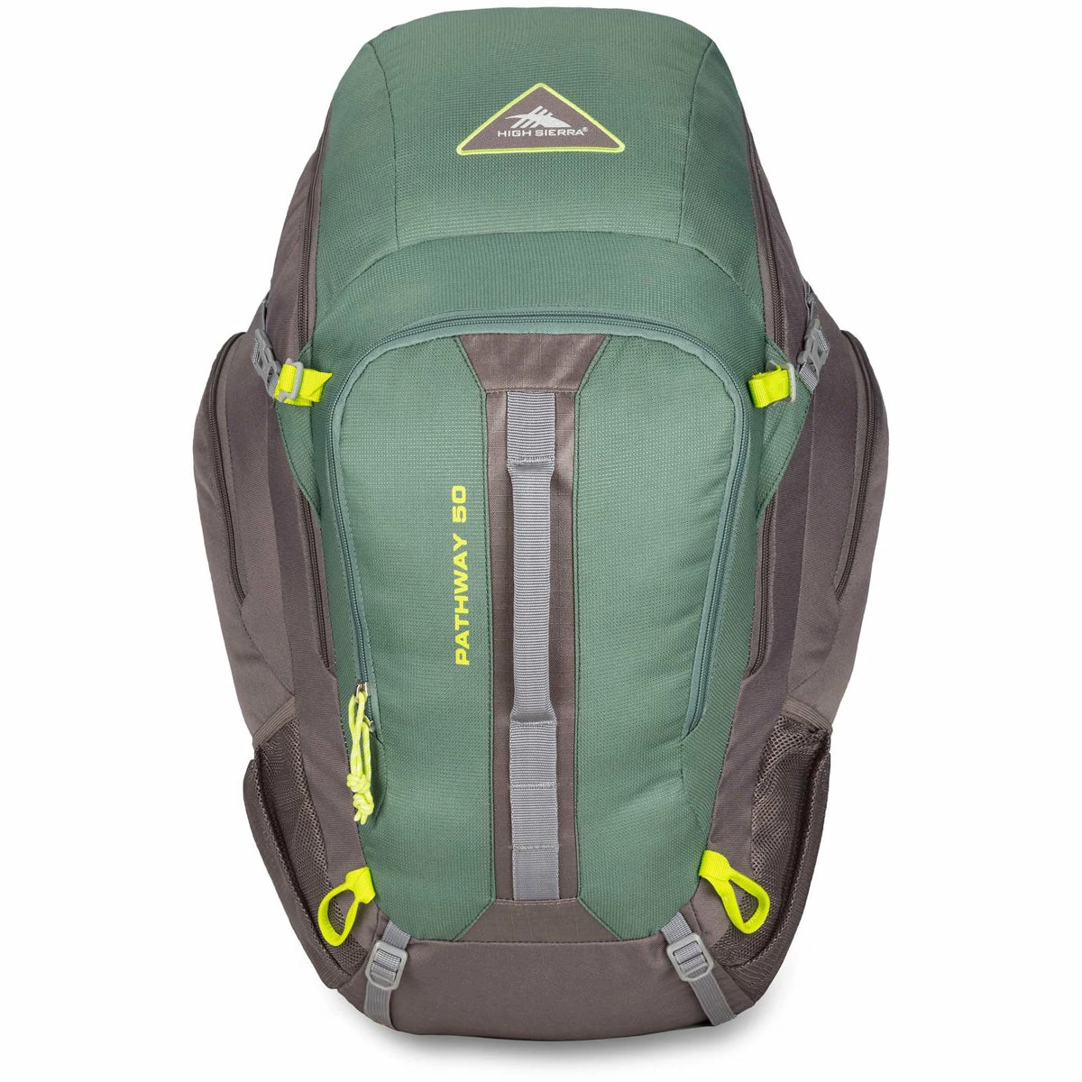 - LARGE MAIN COMPARTMENT and MULTIPLE POCKETS: this 50 liter hiking backpack from High Sierra features deep zipper access to large main compartment; includes a large front zippered pocket with internal organizer and stretch mesh exterior pockets