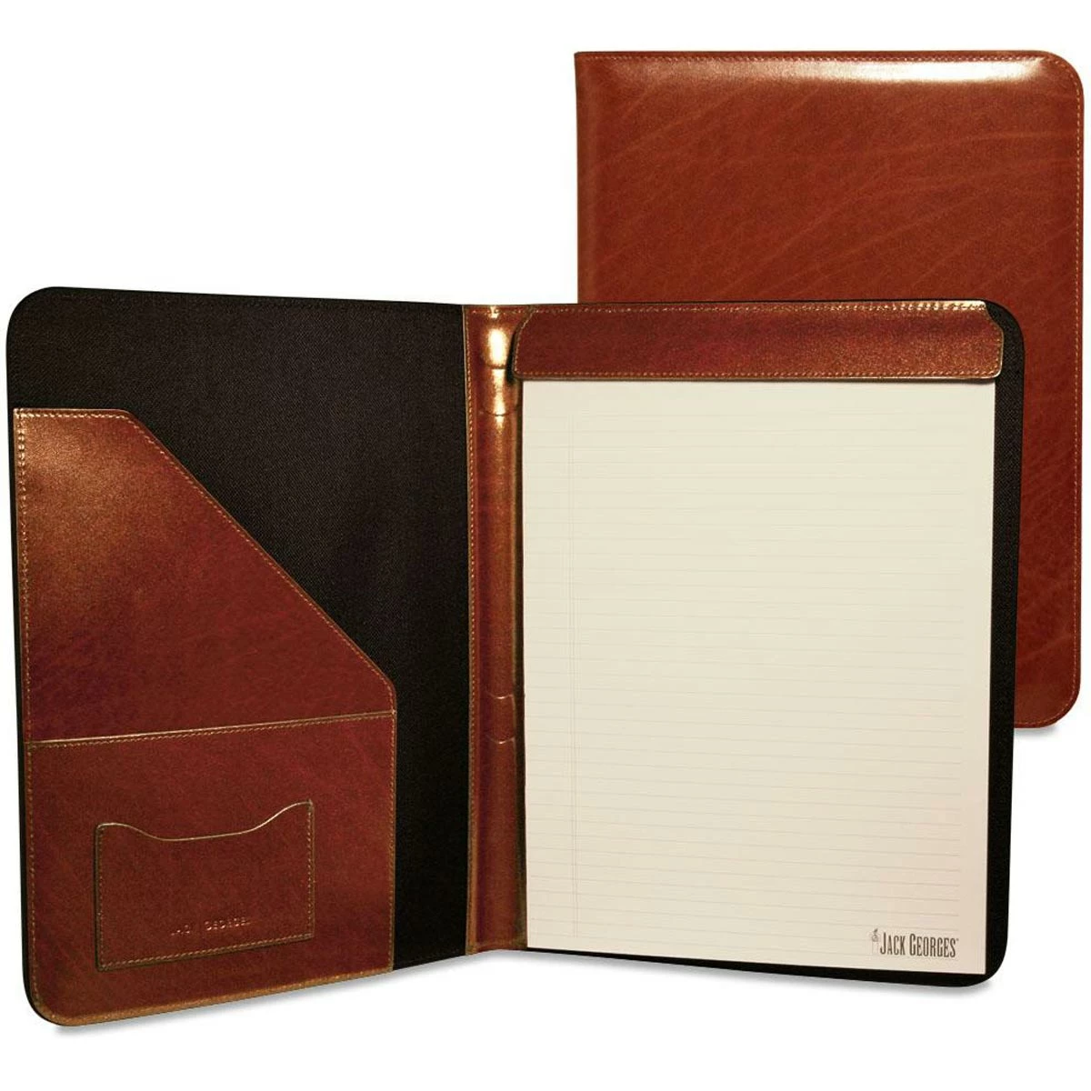 This Professional Writing Pad Holder is hand made from European leather that is known for its durability, strength, and scratch resistance. Its crisp, clean design includes an inside document pocket, business card pocket, pen loop, and room for an 8 1/2″ x 11″ letter size writing pad which is included. This padfolio features: