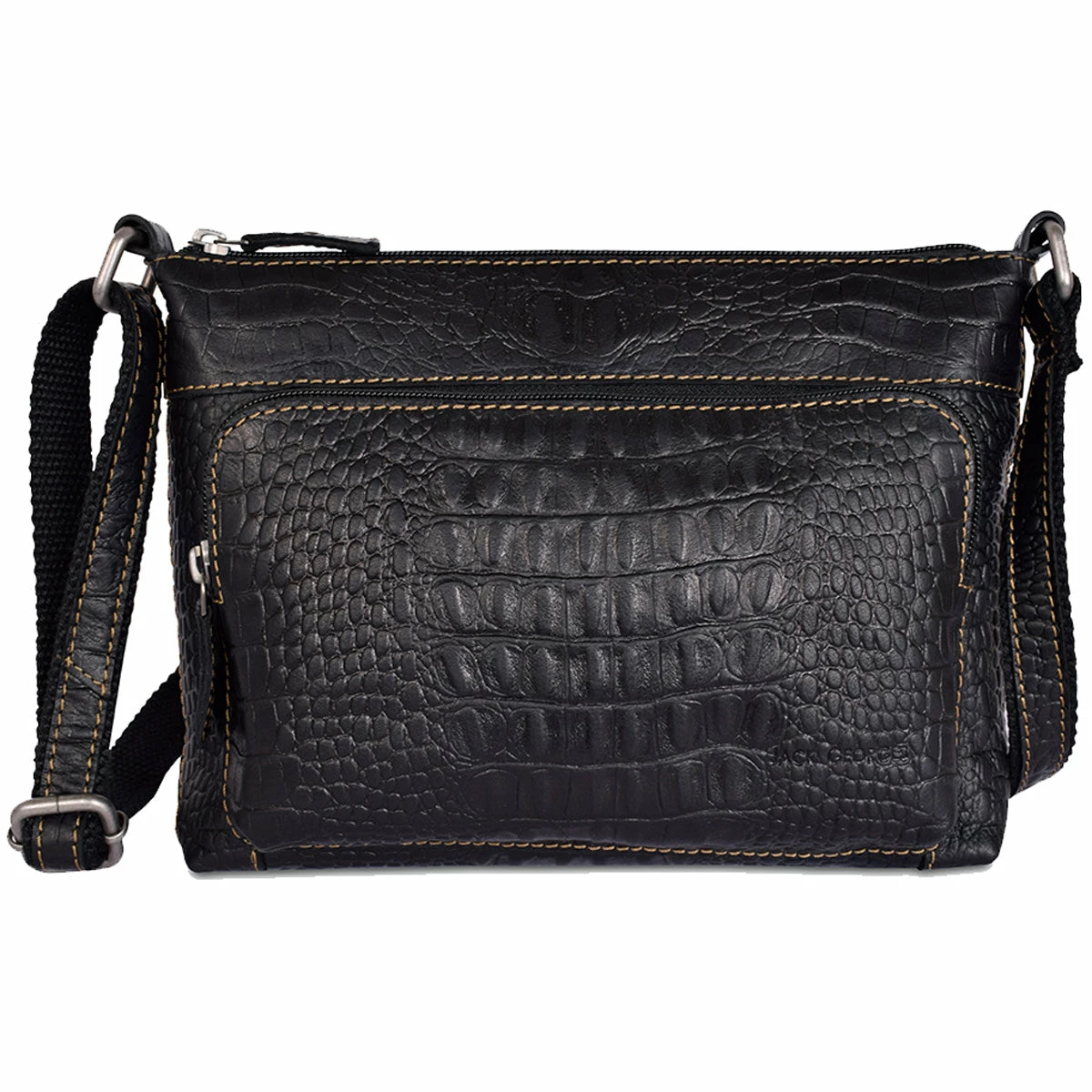 Jack Georges Hornback Croco Mini City Crossbody bag is perfect for an active lifestyle. It is handmade from hand-stained buffalo leather and offers the right amount of space for your essentials. Top zip closure secures everything within. The bag has a u-zip front pocket and a zippered back pocket to carry your mobile phone, passport, wallet, documents, and accessories that you need close at hand when you’re on the go. An adjustable shoulder strap for carrying comfort and versatility allows you to wear it on the shoulder or across your chest. This handmade leather bag features: