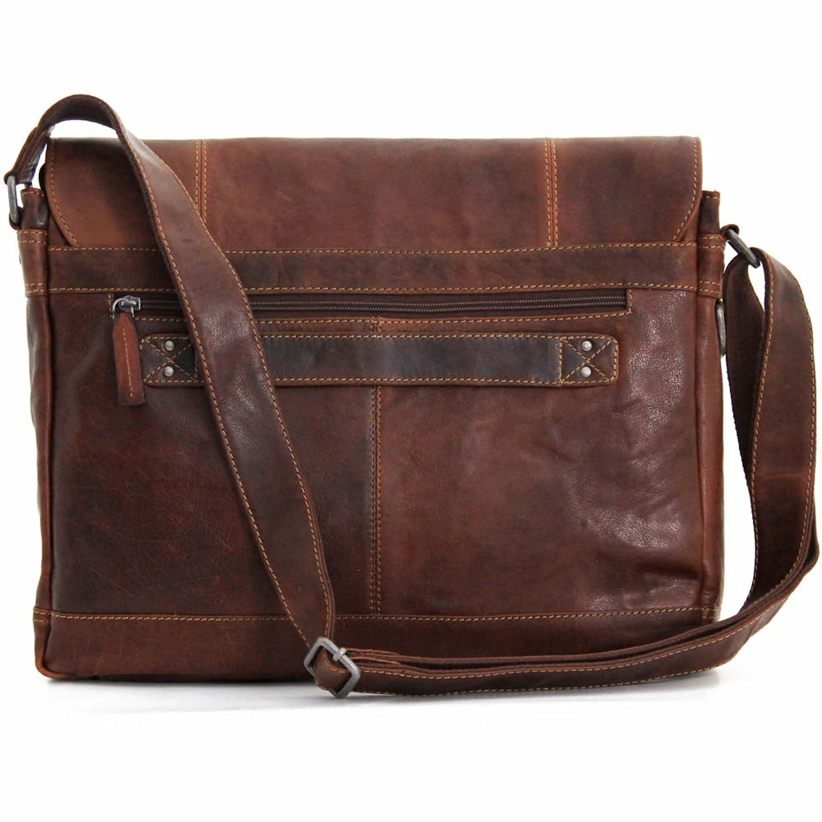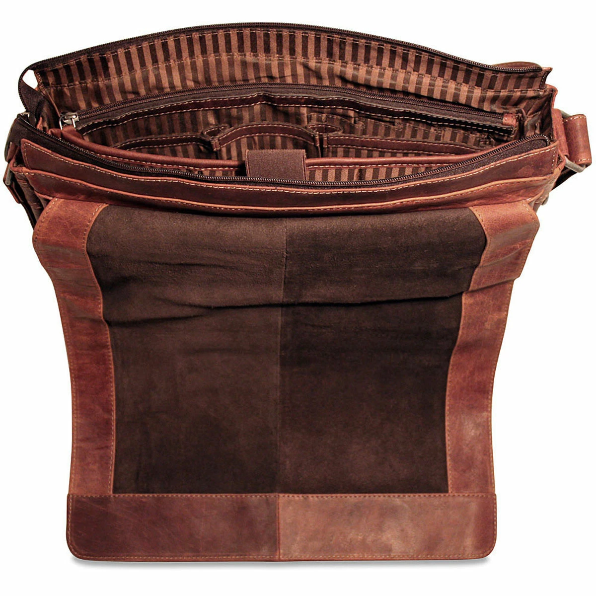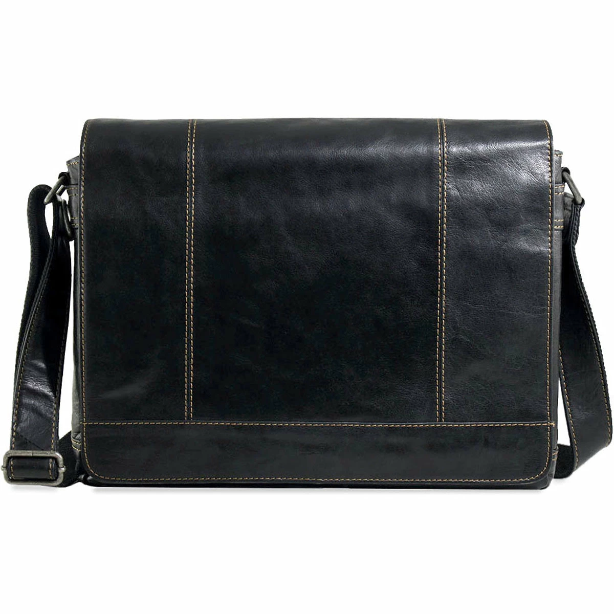 Jack Georges Voyager Full-Size Messenger Bag offers vintage style and smart organization. Handmade from buffalo leather, it will build a rich, beautiful patina as it ages. The bag has a full-length flap with zippered closure beneath for added security. It has a roomy main compartment with a fully lined interior that includes a padded compartment for laptops with up to a 15″ screen. There is plenty of room for files and folders, with organizer pockets to hold your mobile phone, mobile hard drive, wallet, pens, and other personal items. Dual open front pockets beneath the flap and zippered front & back pockets offer added storage for items that you need to have quick access to while you’re on the go. The adjustable leather shoulder strap is versatile and has webbing on the bottom side for added strength and grip on your shoulder while remaining comfortable to wear. The bag features: