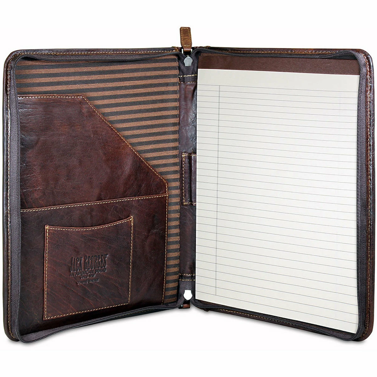 This Voyager professional letter size writing pad holder is made from hand-stained buffalo leather. It offers classic style and function with a softly padded cover for a luxurious handmade feel. This executive padfolio Includes an inside document pocket, business card pocket, pen loop, and room for an 8 1/2″ x 11″ letter size writing pad which is included. The writing pad cover features: