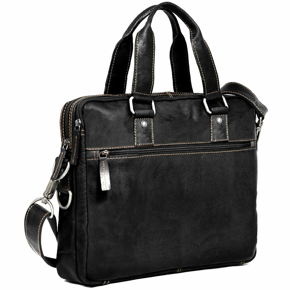 Jack Georges Voyager Professional Zippered Briefcase is crafted from buffalo leather that builds a rich, deep patina as it ages. The bag has a two-compartment design with carrying handles, zippered front, and back compartments, a padded section that will hold laptops with up to a 15″ screen, and organizer pockets to hold your mobile device, accessories, and your pens. Zippered front and back pockets provide convenient storage for your mobile phone and anything that you need to keep within easy reach while you’re on the go. The bag has an adjustable/removable shoulder strap for your carrying comfort and a D-ring on the gusset to clip your keys or needed essentials. This handmade leather briefcase features: