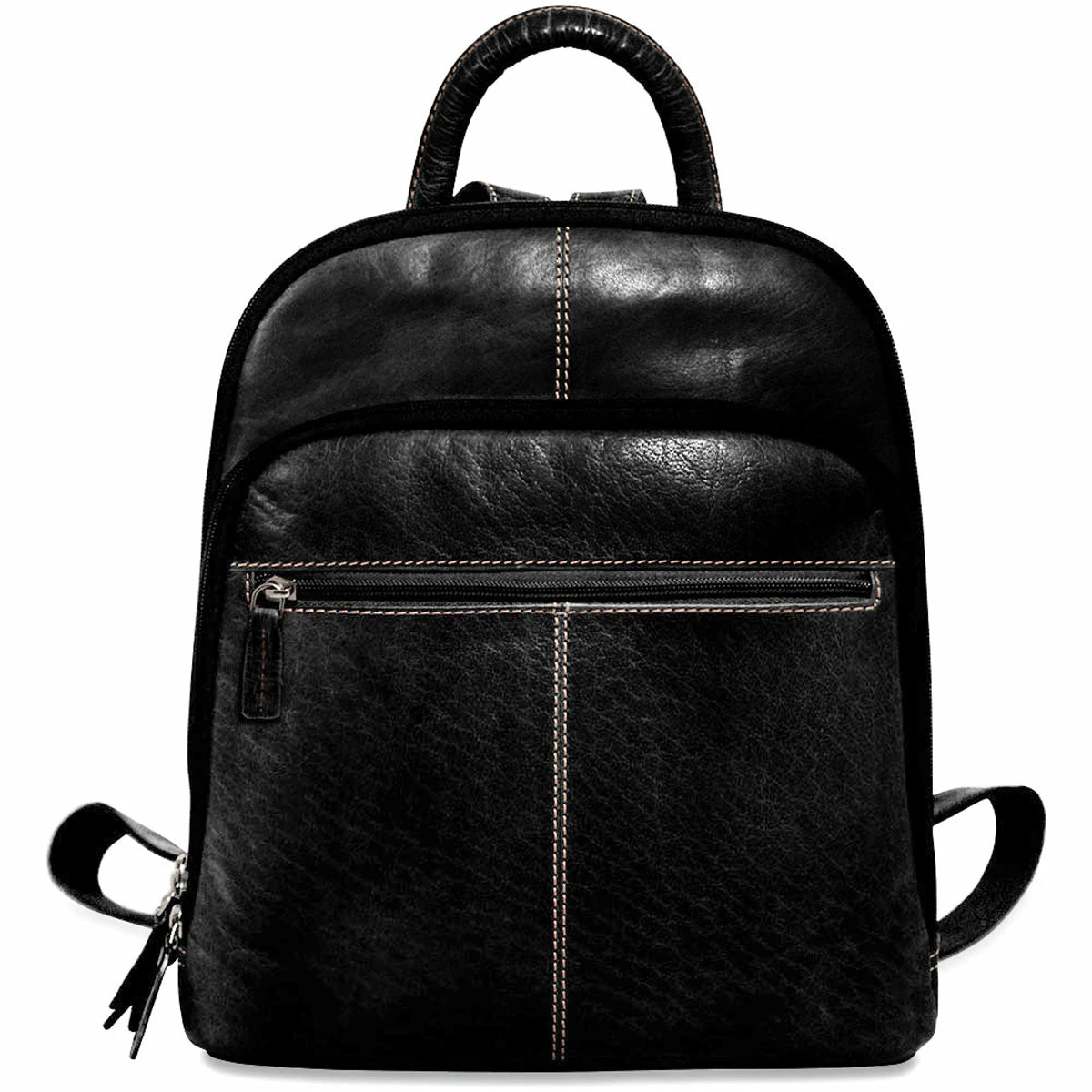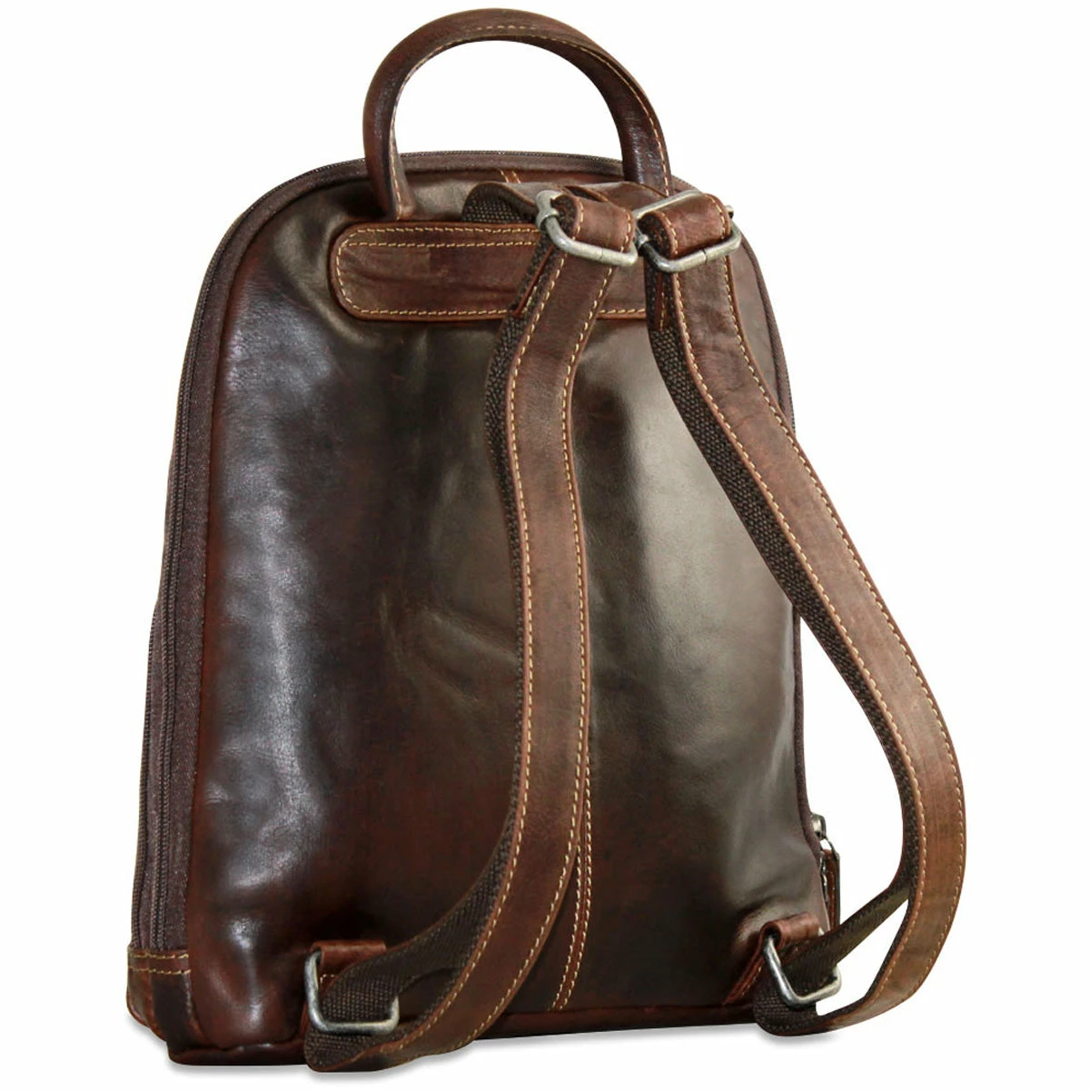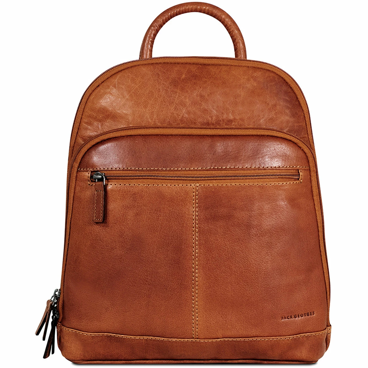 Jack Georges Voyager Small Backpack is handcrafted from hand-stained buffalo leather that grows in character and beauty and builds a rich patina as it ages. It is a trendy, hands-free alternative to traditional handbags. With a designated pocket to hold your tablet and organizer pockets for your cards and accessories, it will carry everything that you need while shopping, traveling, or heading to the cafe. This handmade leather bag features: