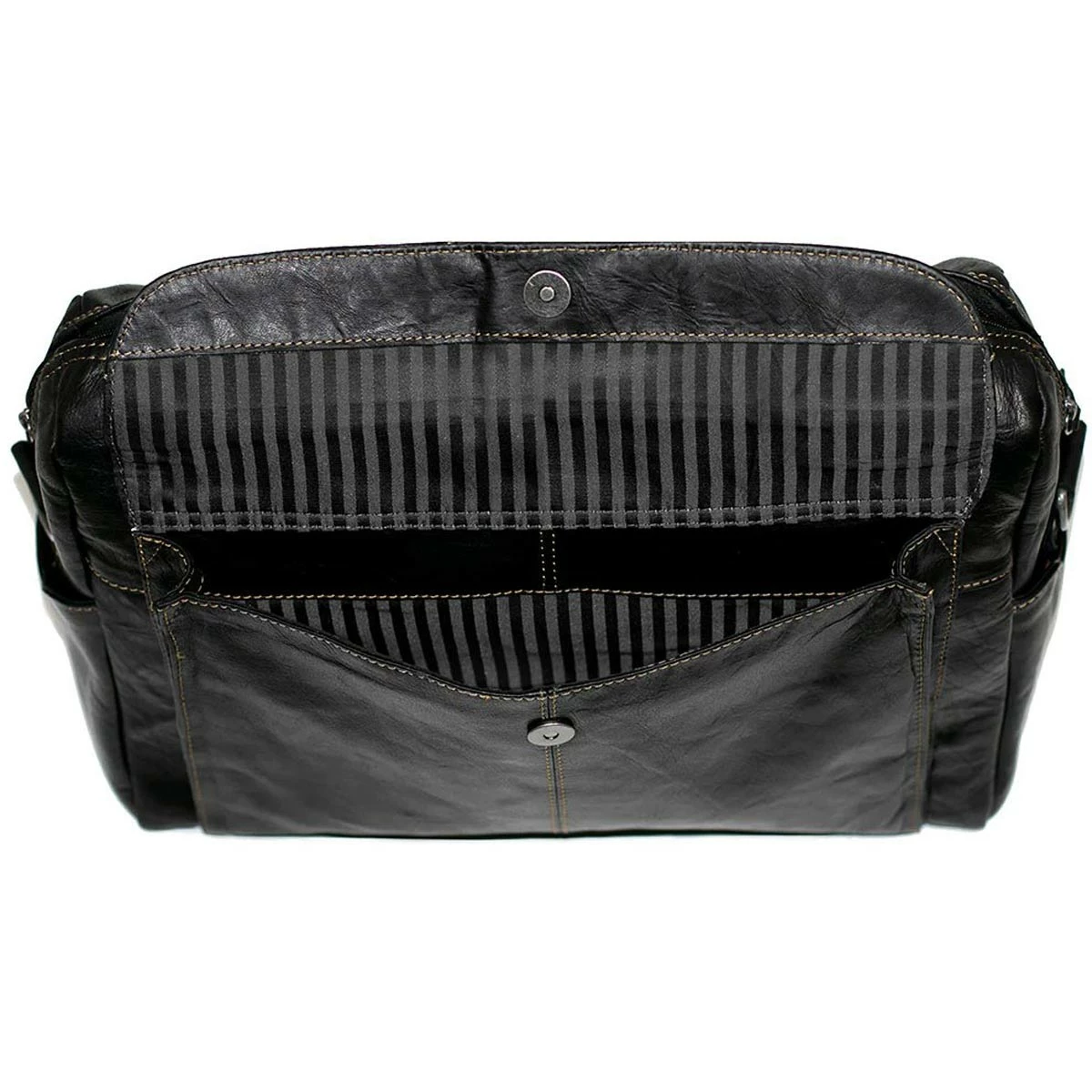 - Large front pocket with flap closure