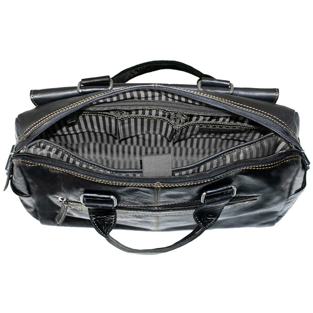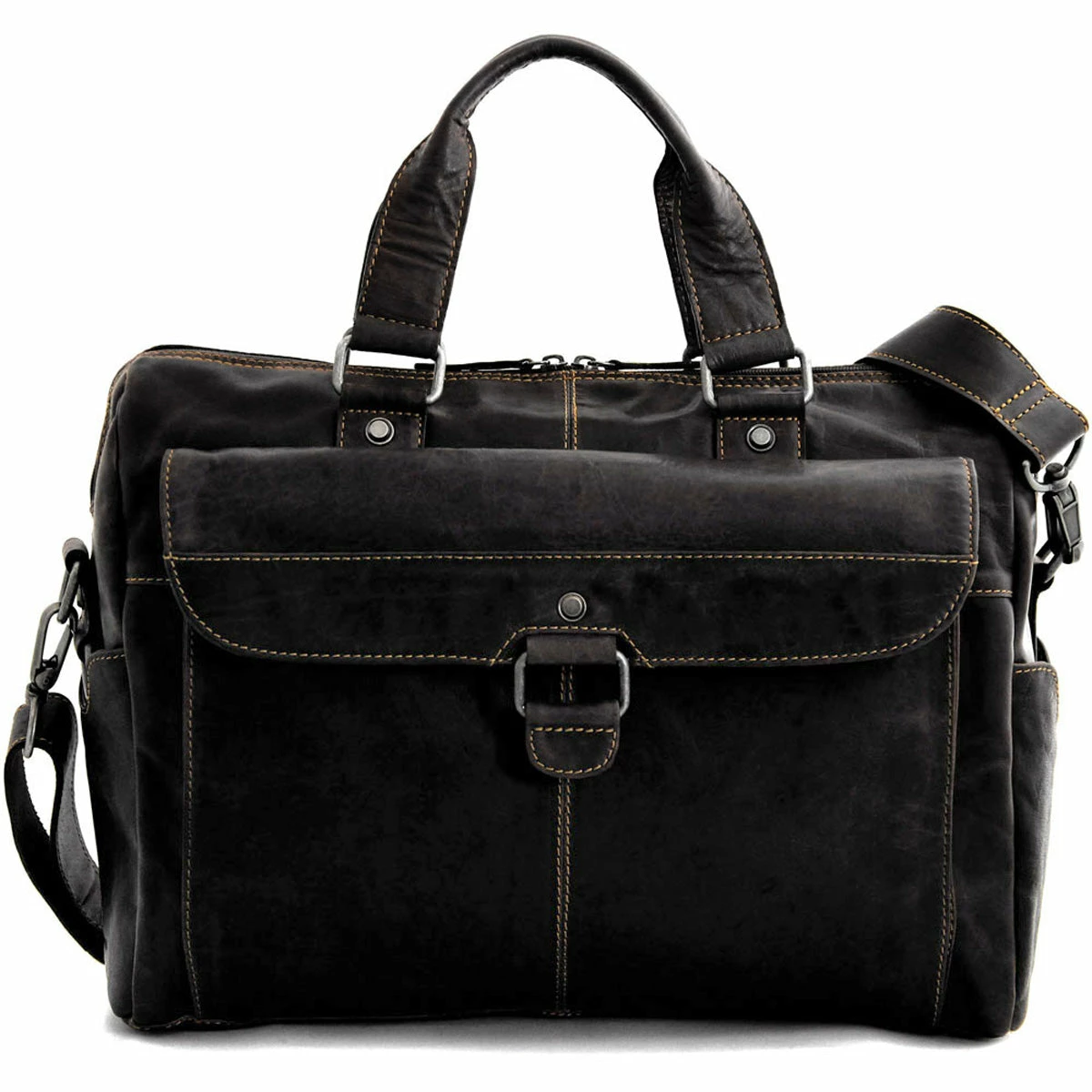 Keep your files and documents neatly organized and your laptop computer well-protected in Jack Georges Voyager Zippered Briefcase With Front Flap Pocket. Its soft, smooth, and supple buffalo leather builds a beautiful, rich patina as it ages. Top zip closure allows items to be secure inside including laptops with up to a 15″ screen. The large front pocket and zippered back pocket are the perfect places to keep items that you need quick, easy access to. A trolley strap on the back comes in handy when you’re traveling as it allows the bag to be attached to a wheeler. Organizer pockets inside will hold your cell phone, wallet, pens, and accessories. A full-length zippered inside pocket will keep your critical documents separated and secured. An adjustable/removable shoulder strap adds carrying comfort and convenience. This handmade leather briefcase features: