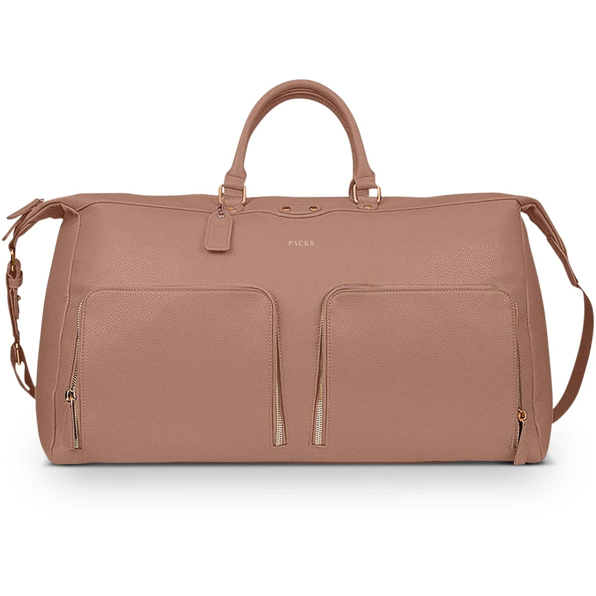 Packs Travel Kingman Weekender is made of high quality full grain vegan leather perfectly size for those weekend getaways. interior features a standard cut away storage pocket with 5 metal landing docks on the bottom.