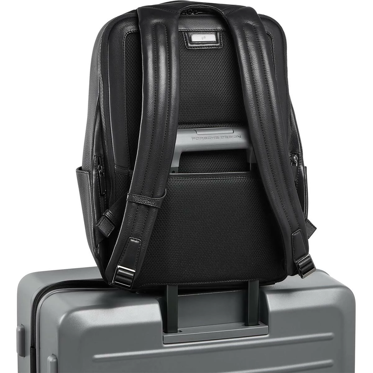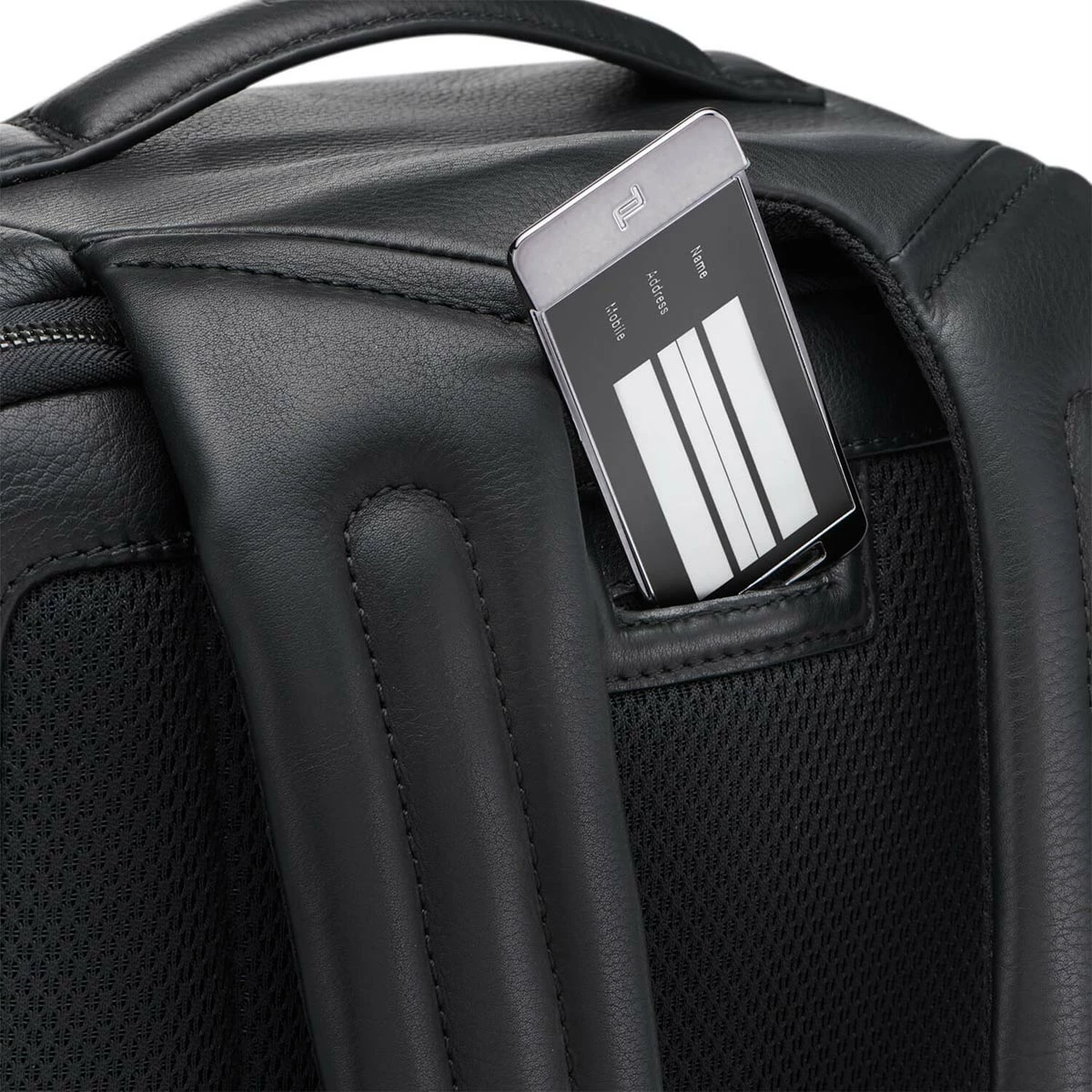 The front compartment with a business organizer and the side pockets can hold all important items; valuables such as keys can be hidden in the pocket hidden in the trolley link. The soft padded backside makes sure that this leather backpack is not only extremely secure, but rather as comfortable as possible as well.