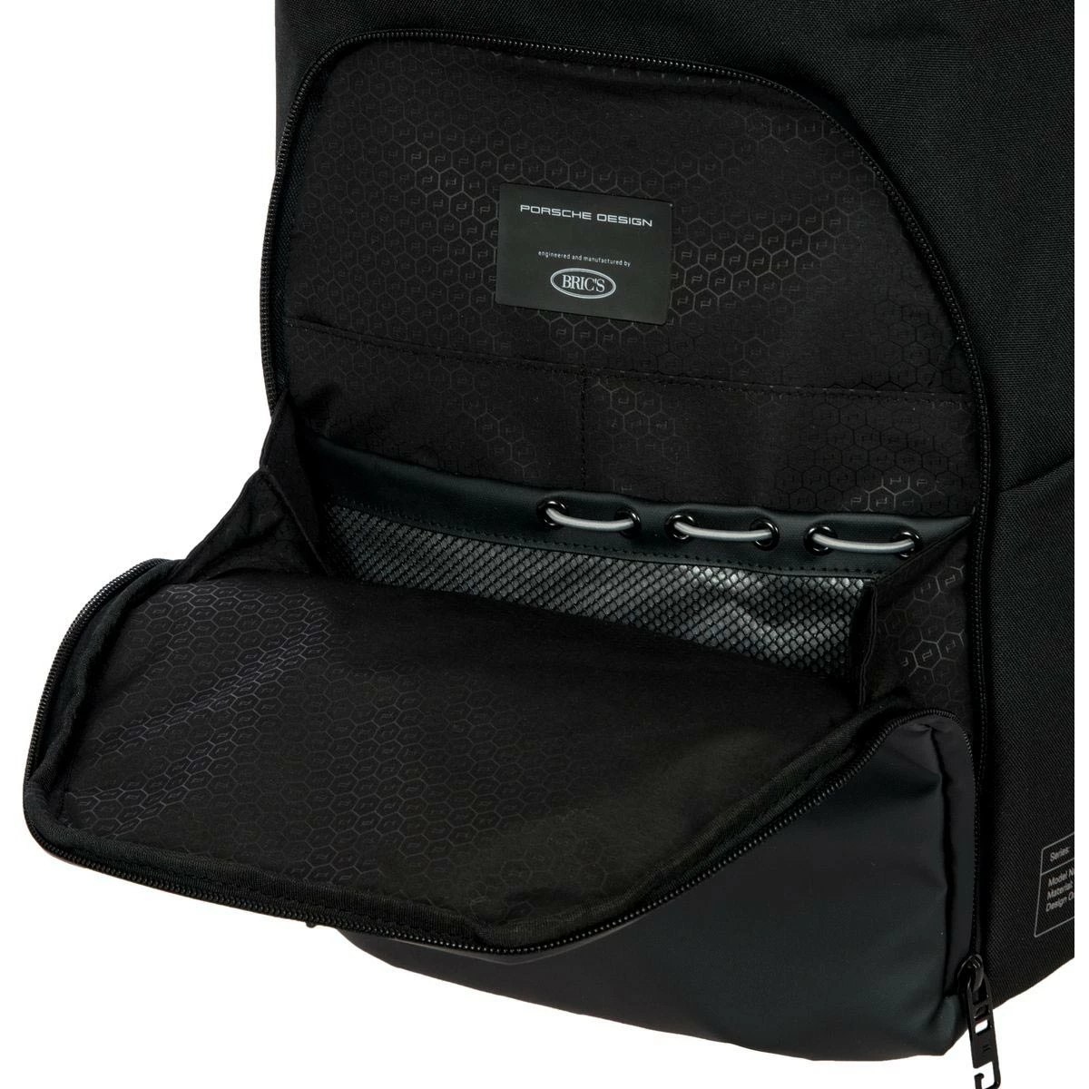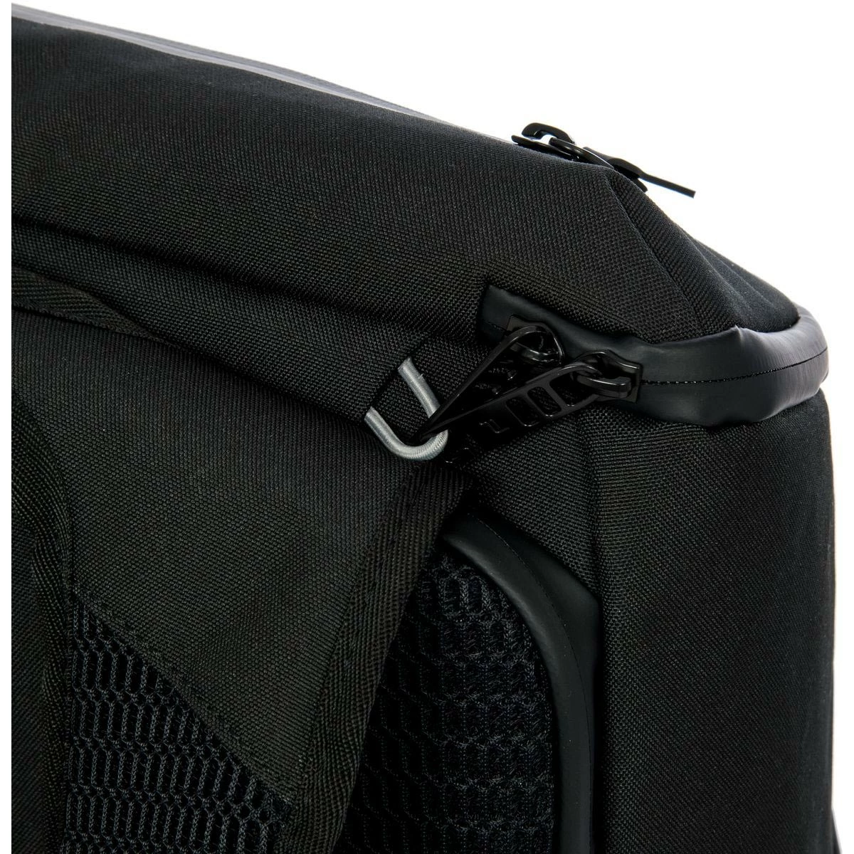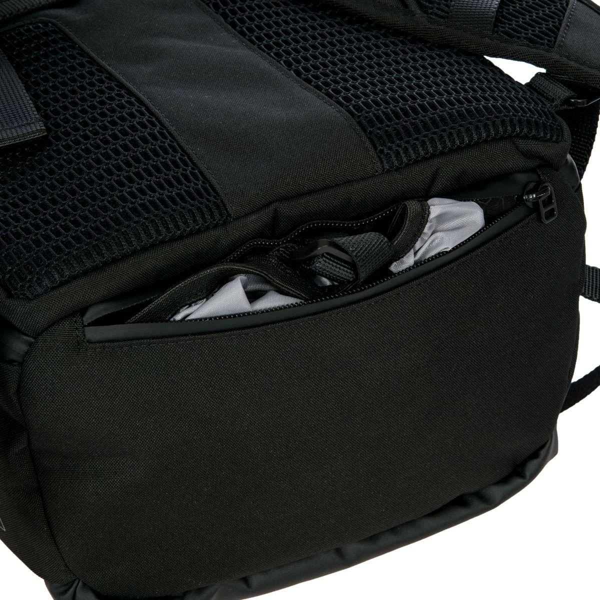 - Additional lateral pockets with gusset, shoulder straps with multi-function loops,
