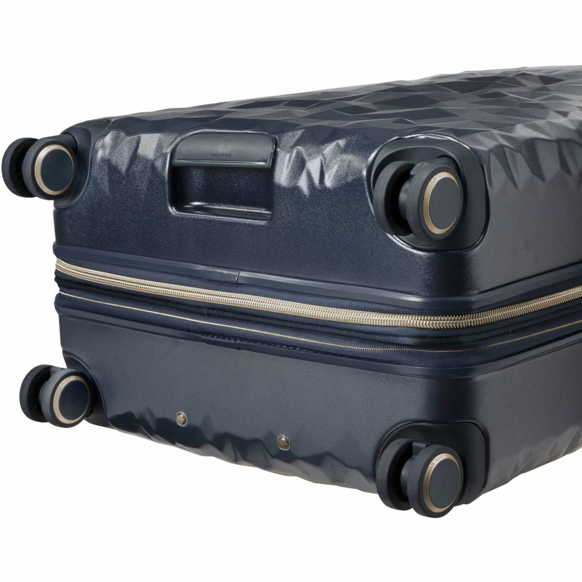 Stylish and durable, this memorable mid-sized suitcase meant for checking in was designed for travelers who like to pack more and prefer hardside protection. Dual, smooth-rolling wheels move easily and stably in any direction with the gentle push of the ergonomic telescoping handle.