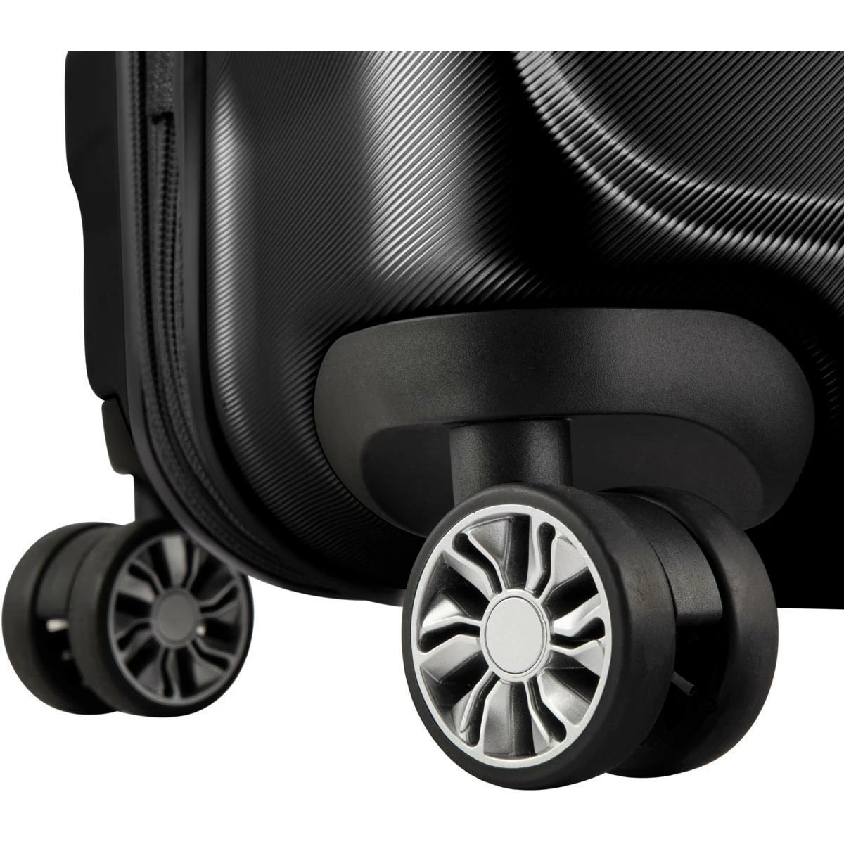- 360º dual smooth-rolling any-direction wheels—recessed for stability