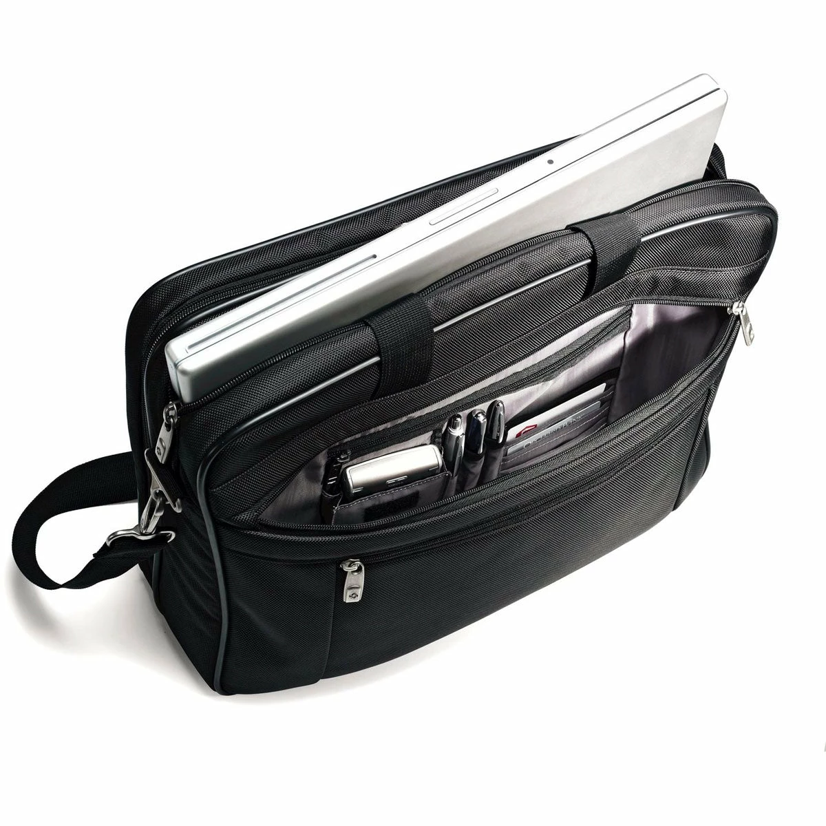 - Front organizer pocket for business essentials