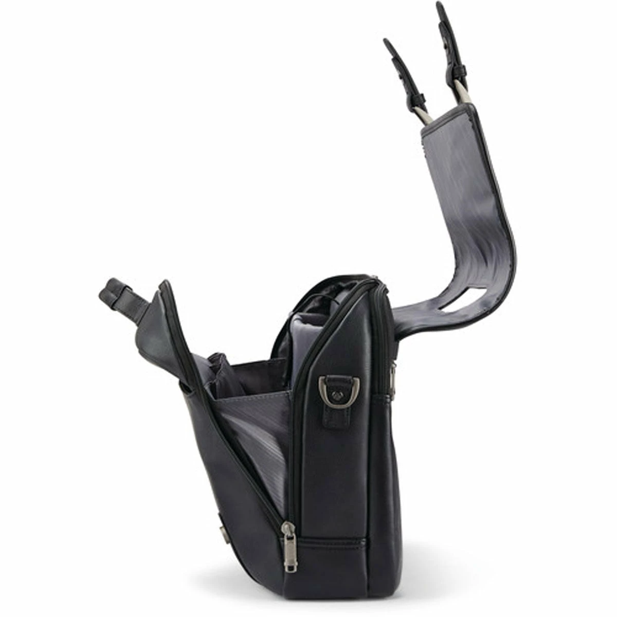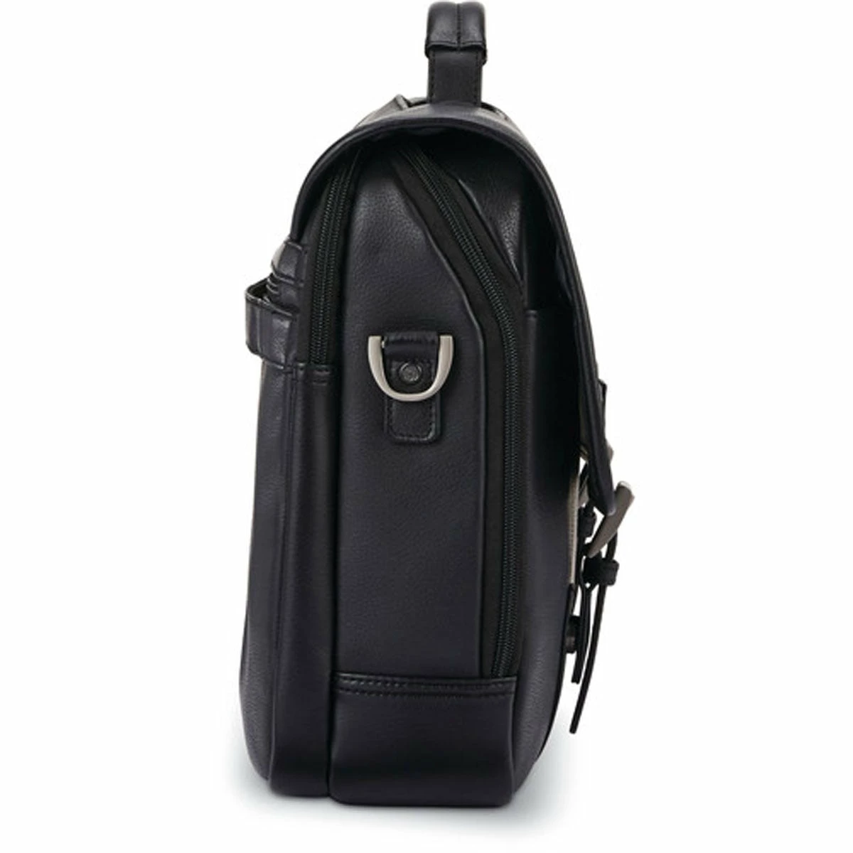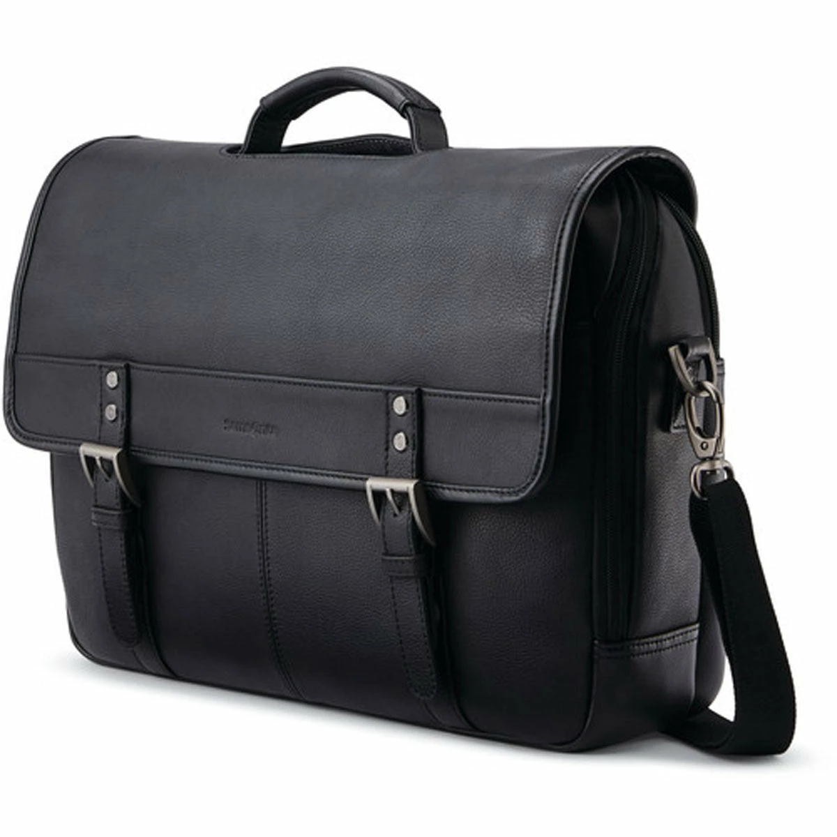 - Classic double buckle business satchel; fits up to 2 laptops up to 15.6″