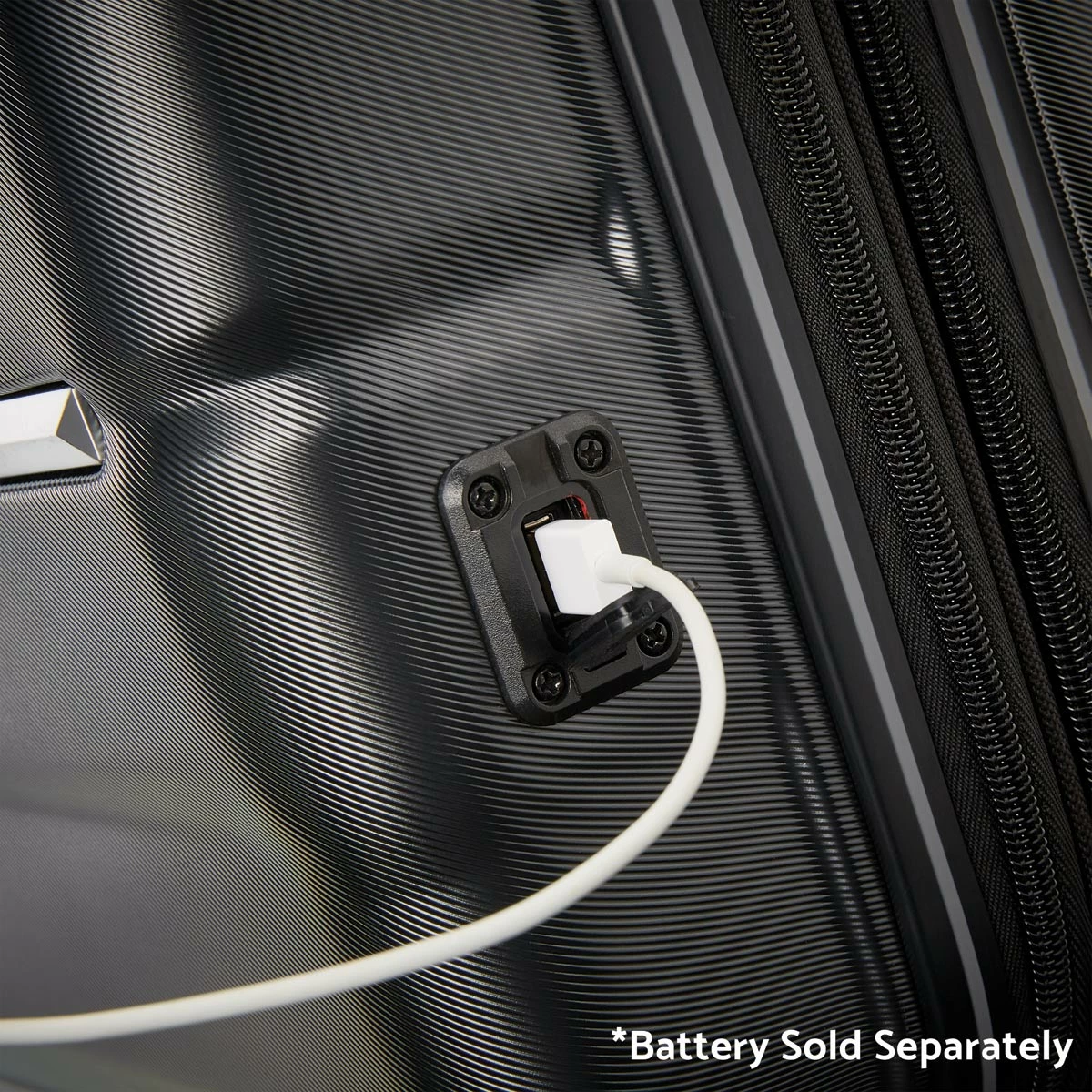 - Exterior: Durable twill-textured polycarbonate shell, USB port (battery not included)