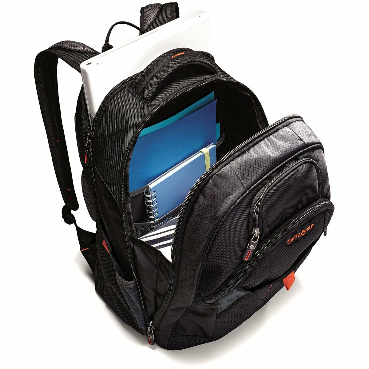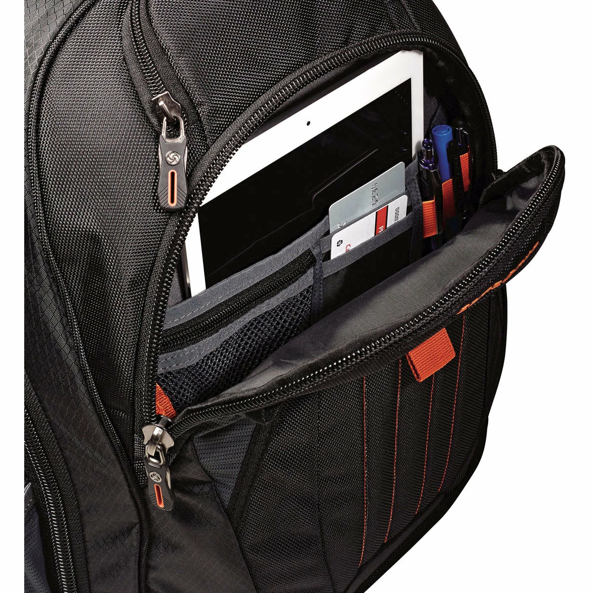 - Brushed Tricot-lined padded drop-in laptop compartment will accommodate most 17″ laptops.