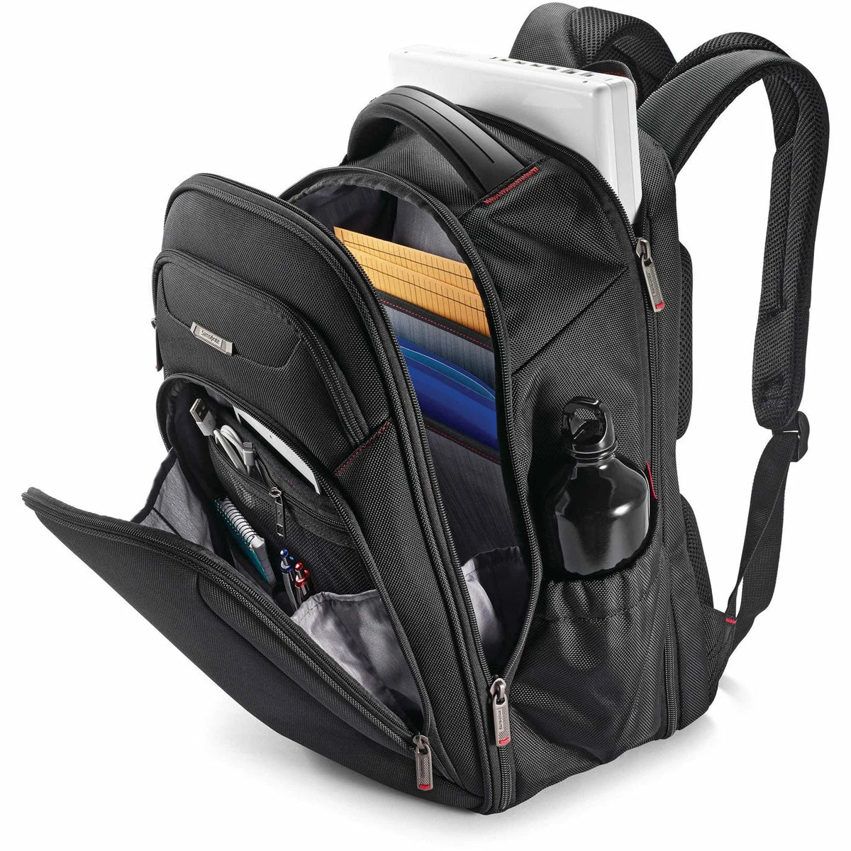 The Samsonite Xenon 3.0 Large Backpack is made of durable 1680 Denier Ballistic Polyester. This TSA compatible design holds laptops with up to 15.6 inch screens as well as a tablet. Carry this pack with comfort with the air channel system on the back on the bag with air mesh padding and lumbar support.