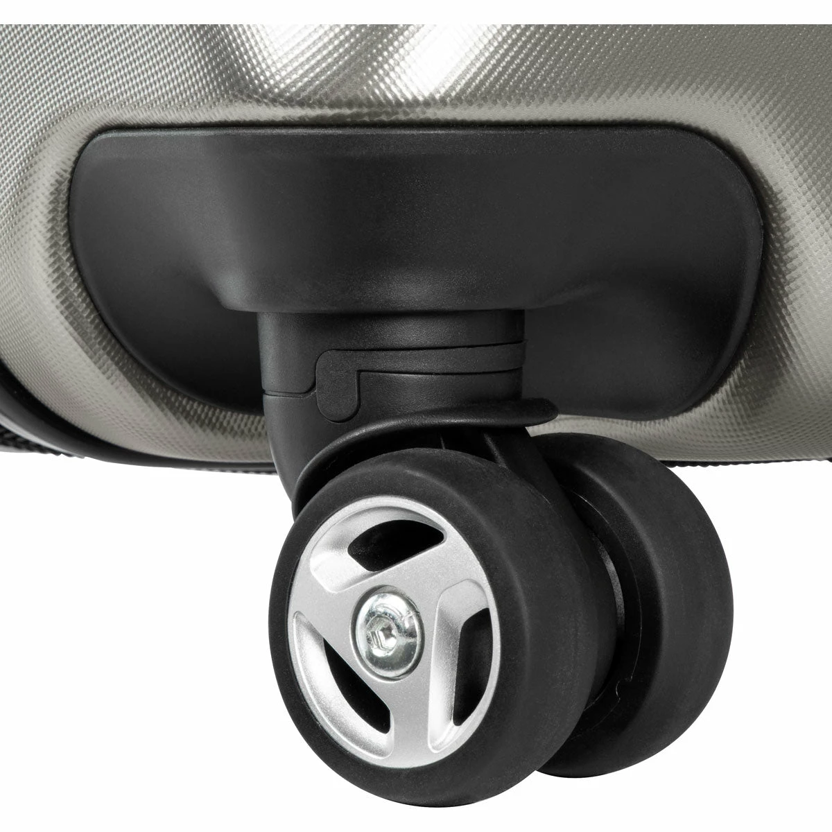 - Dual any-directional wheels; recessed for stability