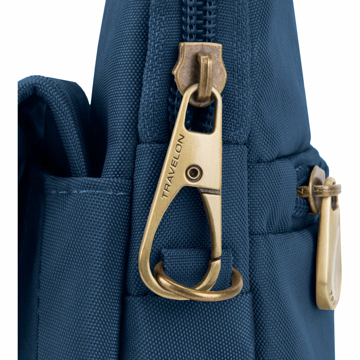 - Full Anti-Theft features include surround slash-resistant body panels and shoulder straps; locking compartments; lockdown strap; and RFID blocking card and passport slots and pockets