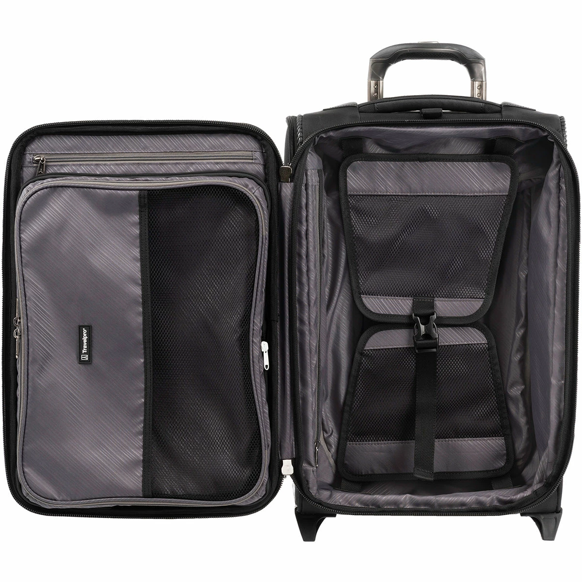 Go anywhere with a Rollaboard that is all your own. The Travelpro Crew Versapack Global Carryon Expandable Rollaboard is designed for total packing versatility and can be personalized with a variety of interchangeable Travelpro® exclusive Zip-In Organizers. Included inside the lid is a removable Zip-In Garment Organizer, ideal for storing folded shirts, dresses and jackets.