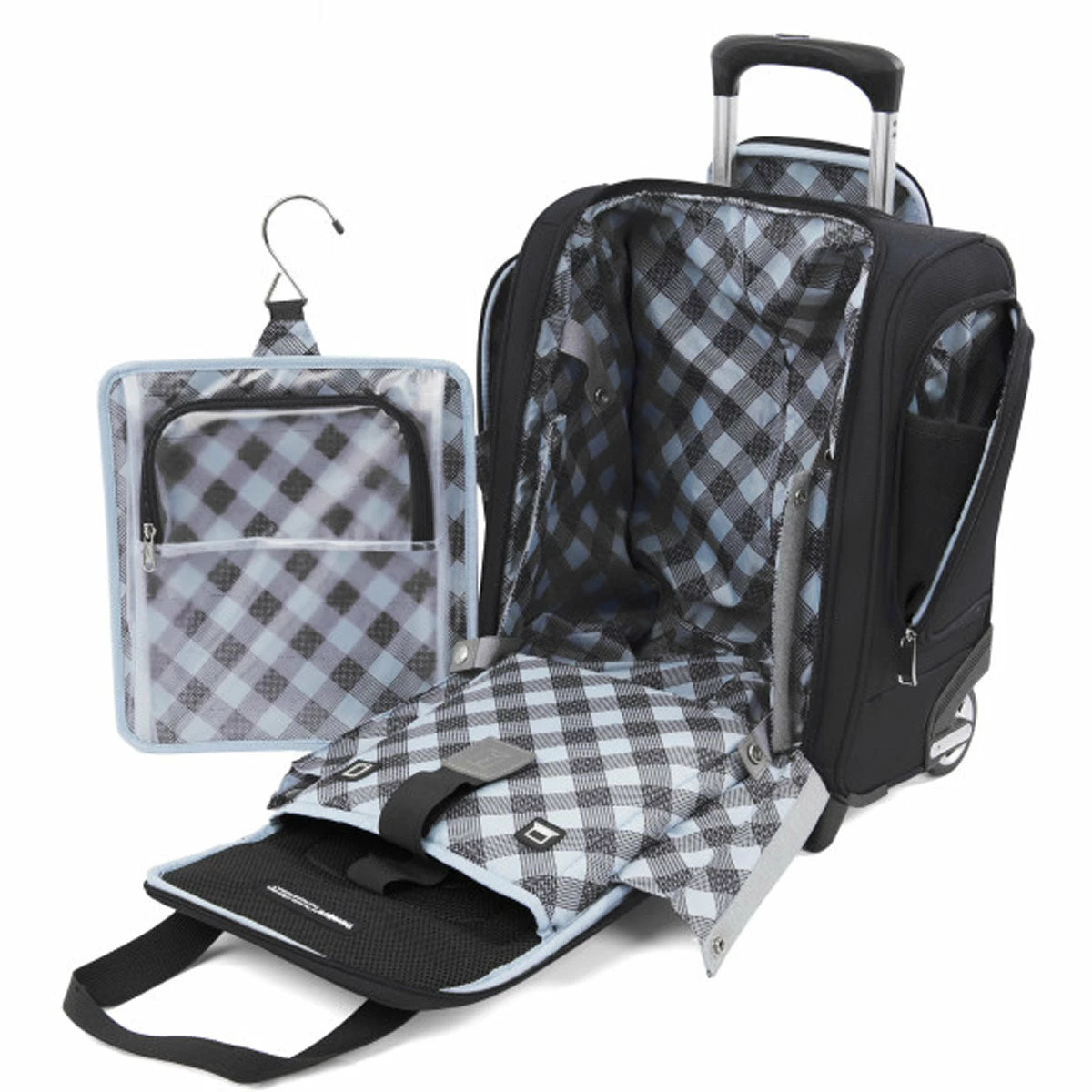 Like traveling with a personal assistant, the Travelpro® Rolling UnderSeat Carry-On is so organized, you don’t have to be. Numerous, specially-designed pockets include a padded laptop or tablet sleeve, removable plastic compartment for cosmetics, office supplies or accessories, quick-access external pockets and a roomy interior with large zippered opening. Designed to fit under the seats of most major domestic airlines, this compact carry-on is your ideal onboard traveling companion, flying solo for a quick turnaround or playing back up to your other luggage. Lightweight, PowerScope Lite handle reduces wobble, inline skate wheels keep you rolling smoothly, and a rear stacking strap gives you the flexibility to stack this bag atop another rolling bag for hands-free travel.Â