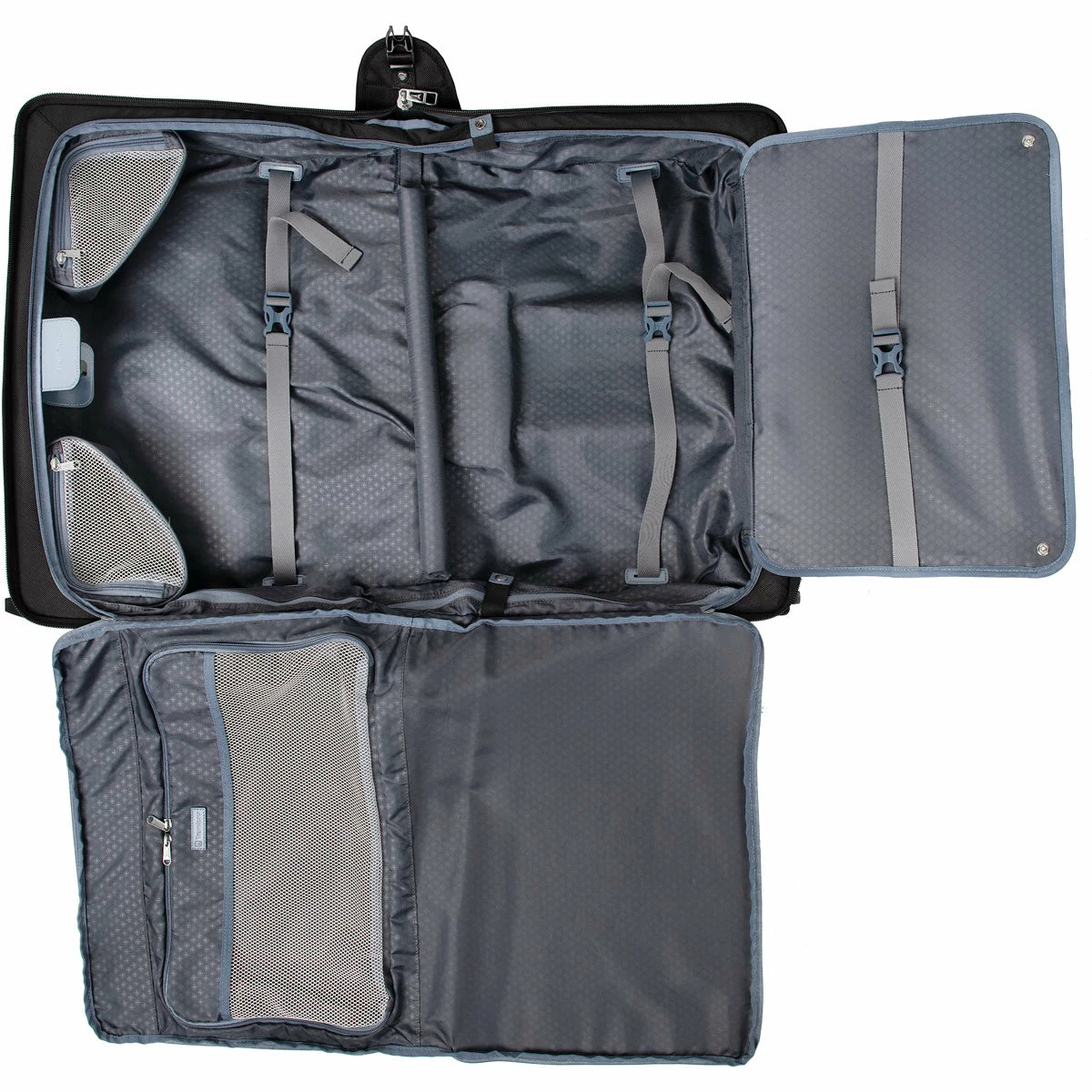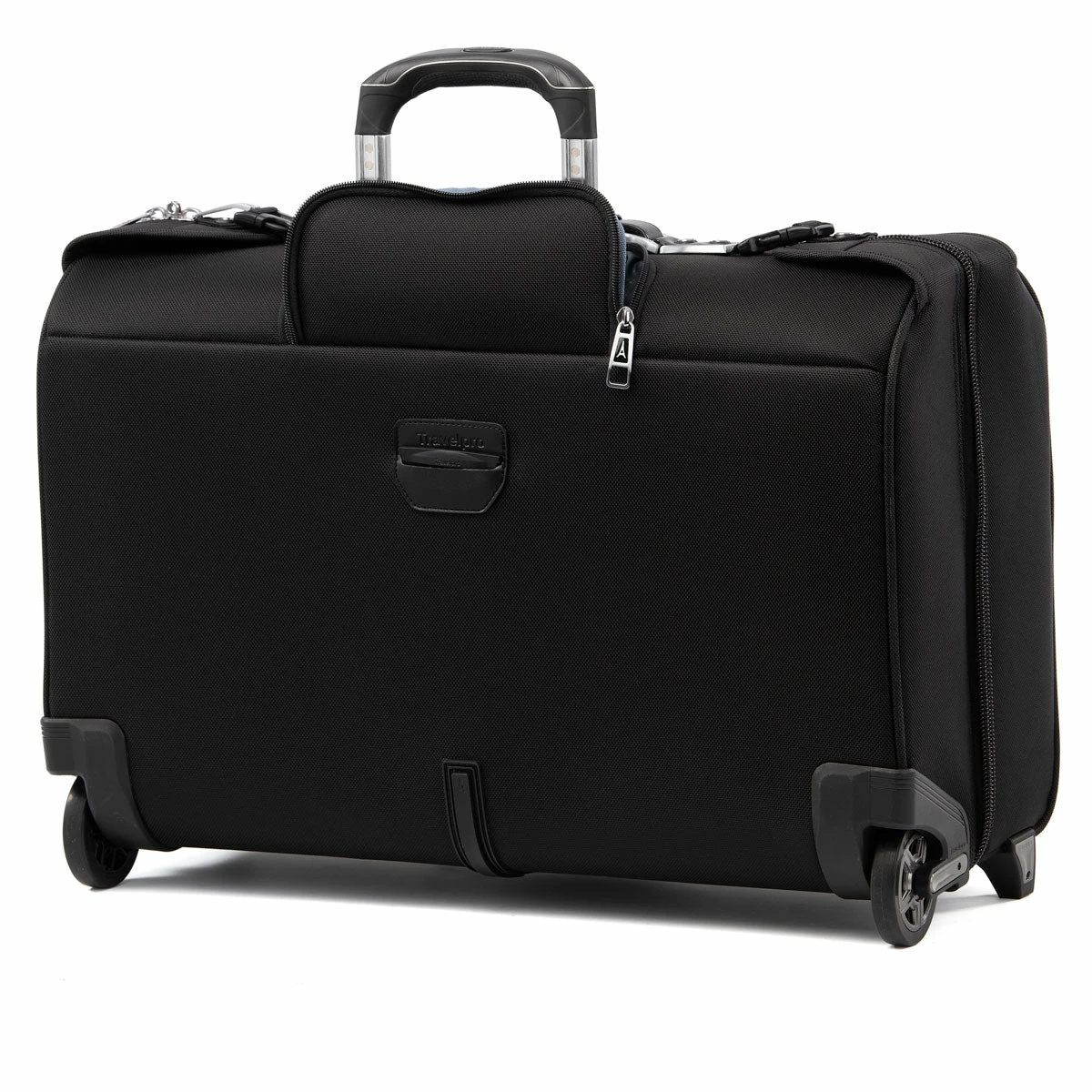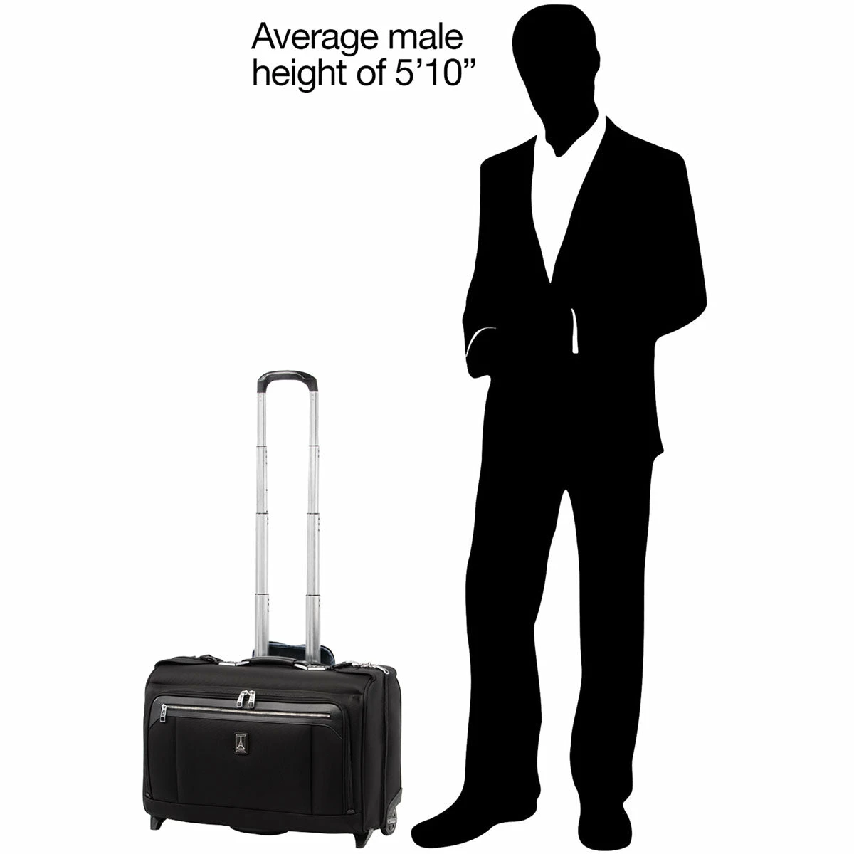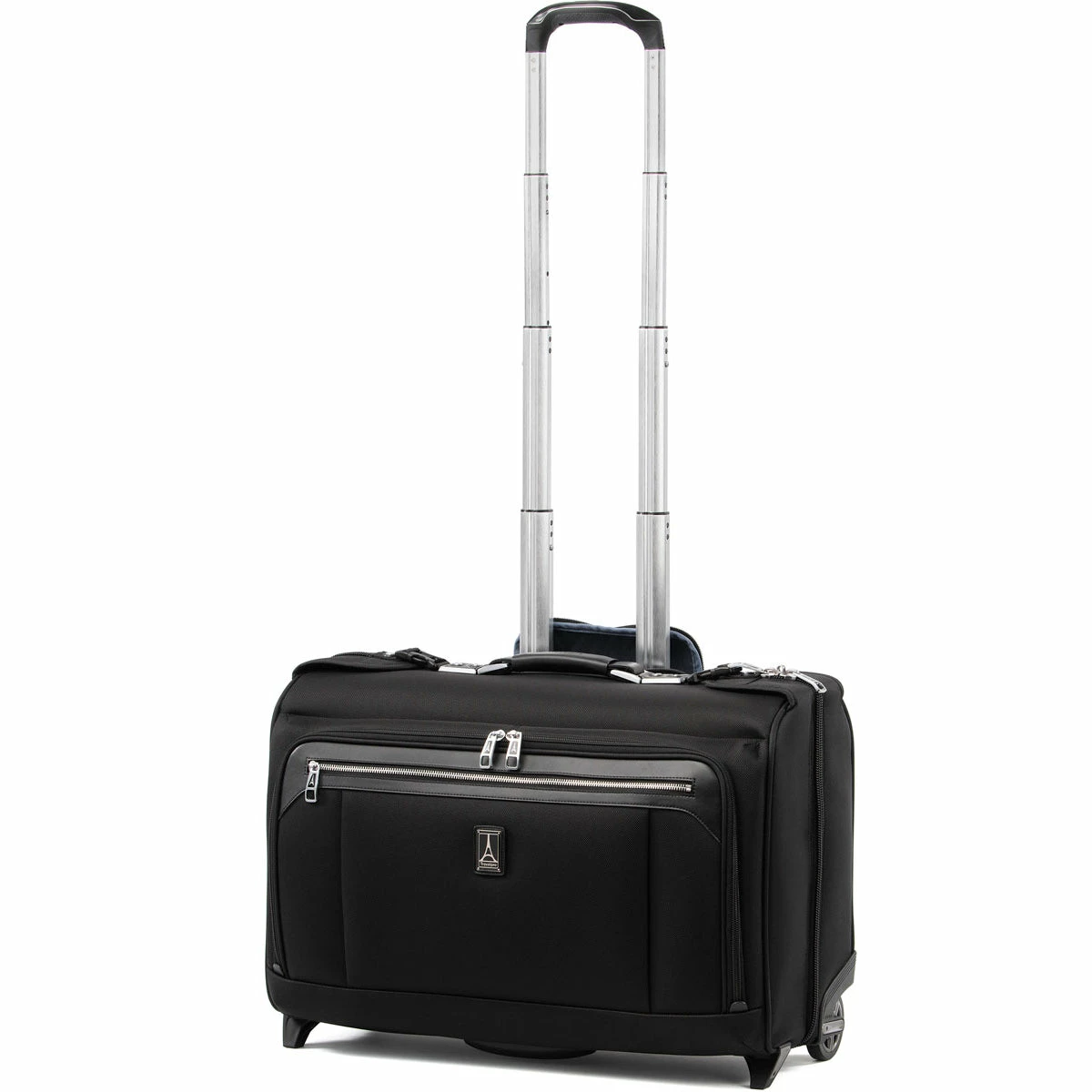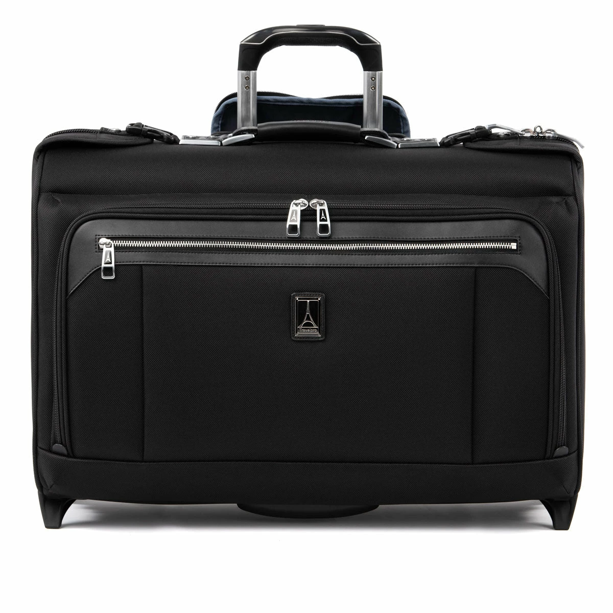 Arrive looking polished and freshly pressed. The Platinum® Elite Carry-On Rolling Garment Bag is designed for wrinkle-free garment packing with a fold-out extension panel and padded roll bar to accommodate hanging suits, dresses and shirts. A well-appointed interior includes built-in pockets for organized storage of folded clothes, undergarments, accessories and more.