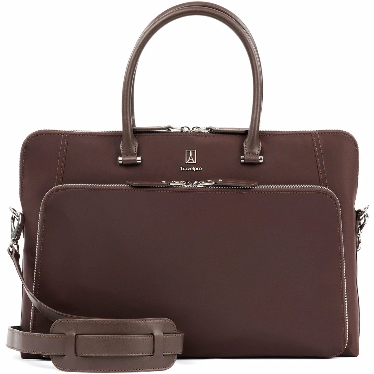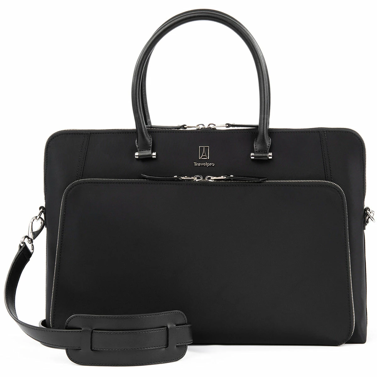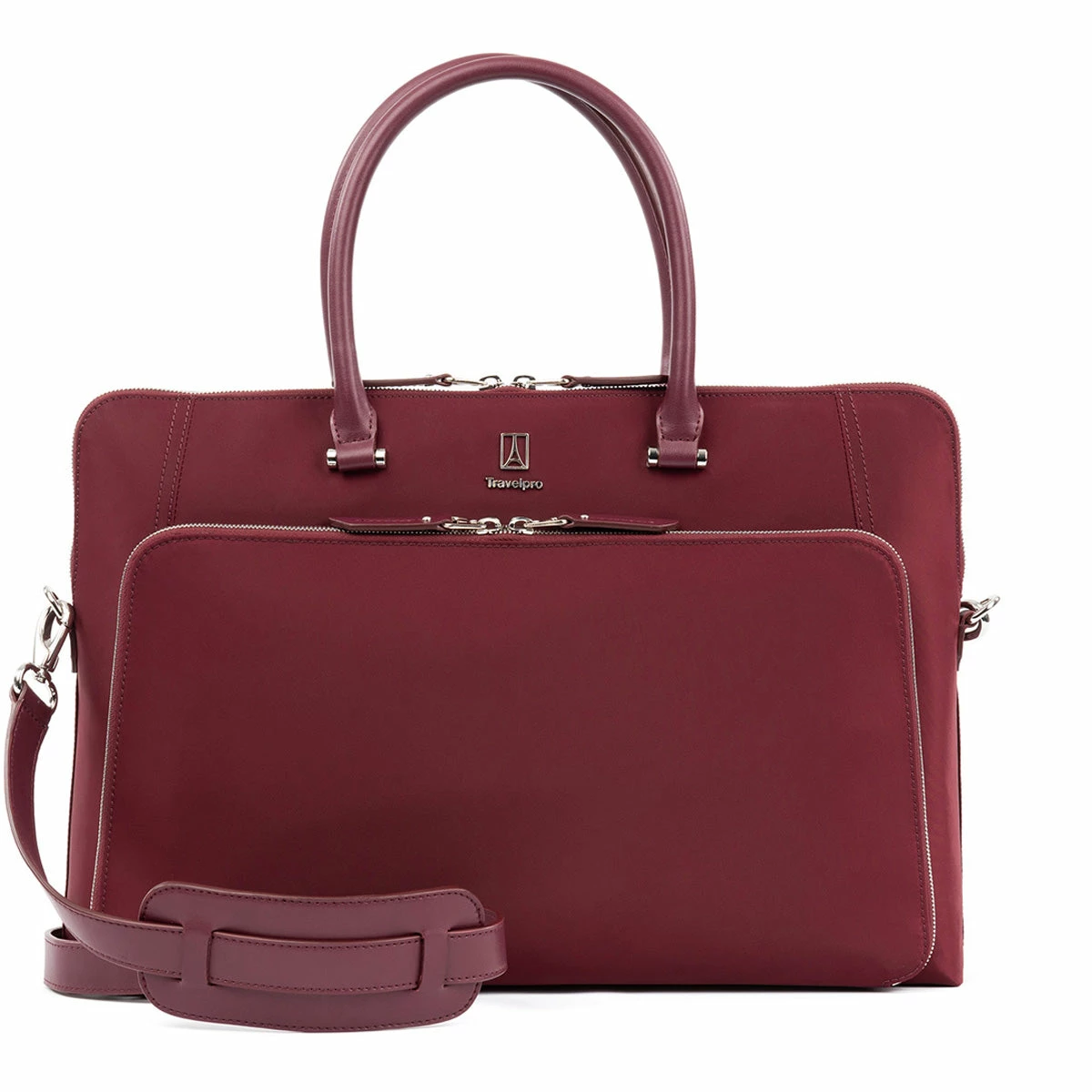 This elegant Travelpro Platinum Elite Women’s Brief puts the beauty back in business and keeps everything you need right where you want it. Crafted from durable, moisture-resistant and stain-resistant materials that stay looking great through excessive use, this bag also features an interior padded laptop/tablet sleeve, built-in organizers and a discreet exterior Travelpro® QuickSlipâ„¢ pocket with magnetic closure, which is ideal for cell phone storage while going through airport security or catching your next business meeting.