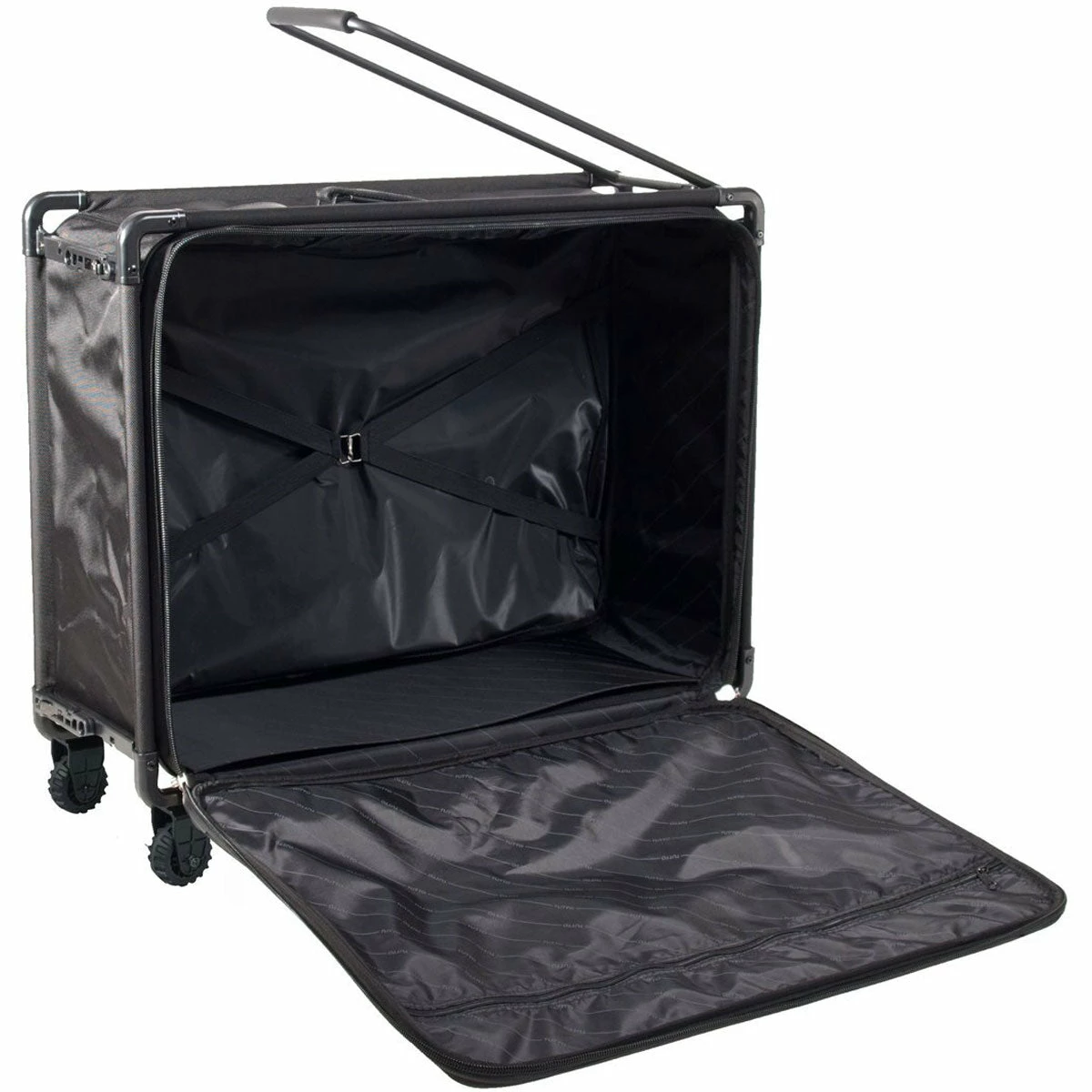 - A fold out side panel can hold several suits rigidly so they don’t get wrinkled.